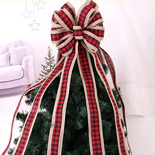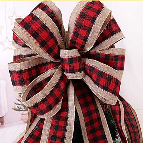 1. Durable material: these Christmas tree topper plaid bows are made of linen or flocking material, sturdy and durable, reusable and not easy to break, you can keep for a long time.