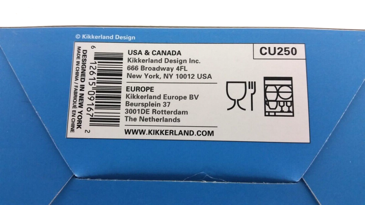 The mug is branded with Kikkerland Design Inc and has a contemporary style