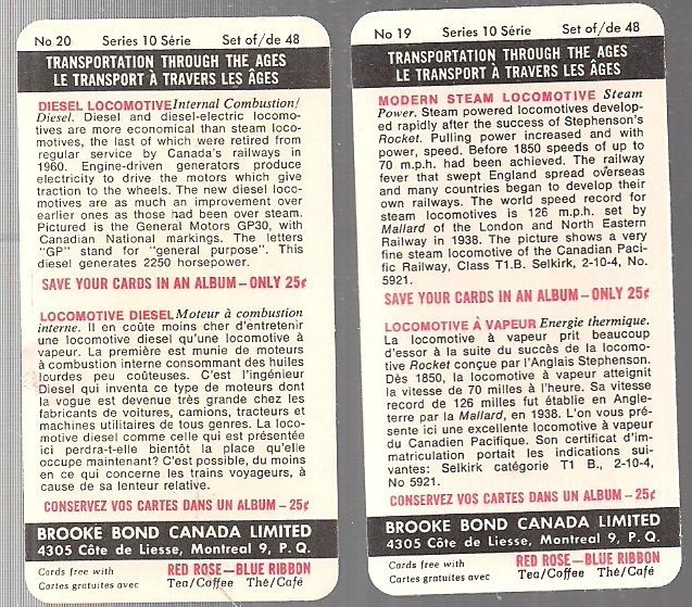1967 TRANSPORTATION THROUGH THE AGES RR Canada (2)cards
