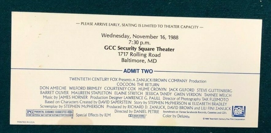 COCOON: THE RETURN (1988) vintage unused and 49 similar items
