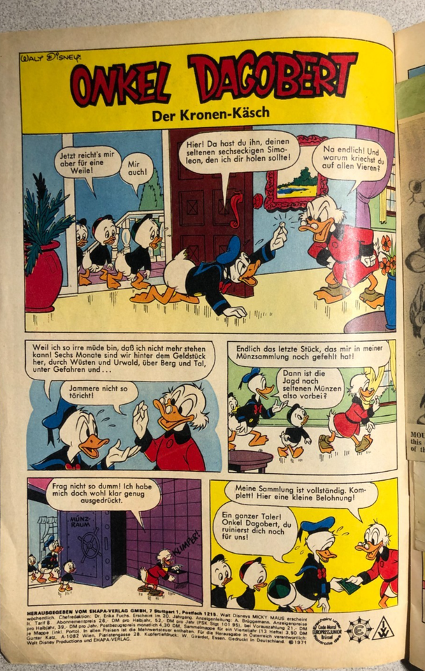 MICKEY MOUSE January 16, 1971 (Germany) German language comic book VG+
