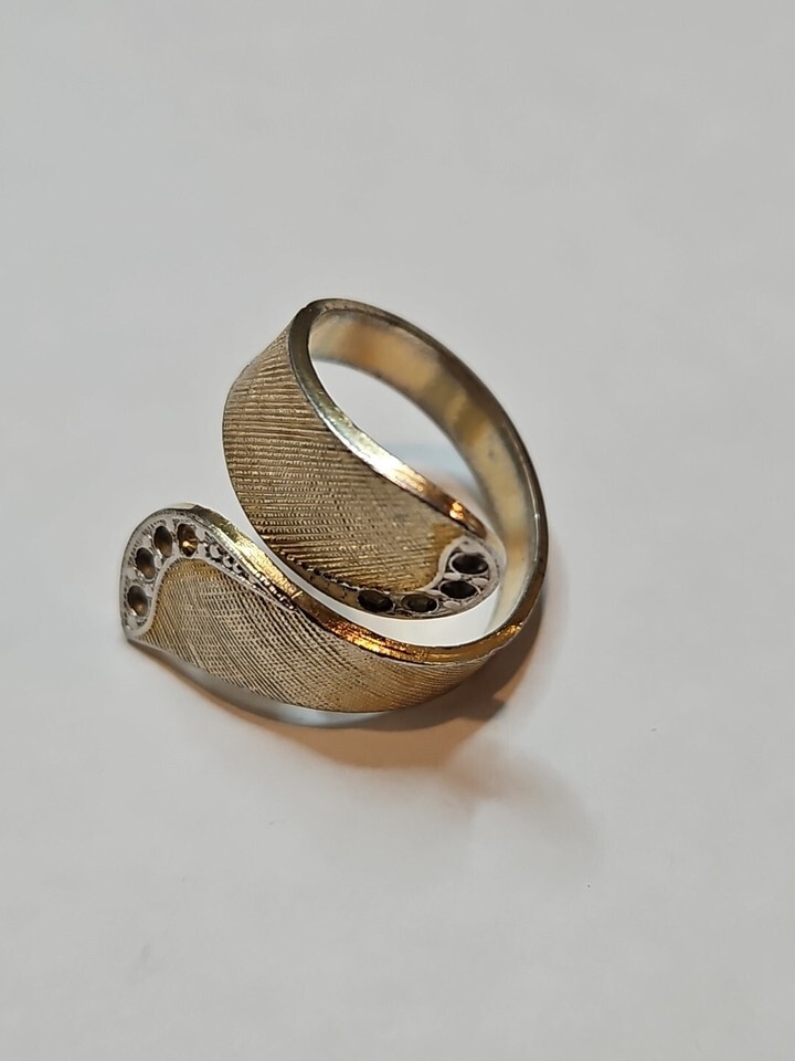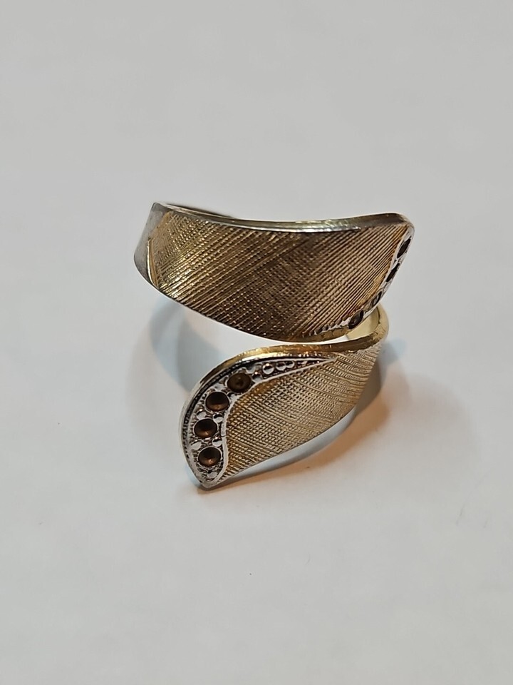 Abstract Minimalist Swirl Design Ring, Gold/Silver Tone, Size 9.5, Vintage