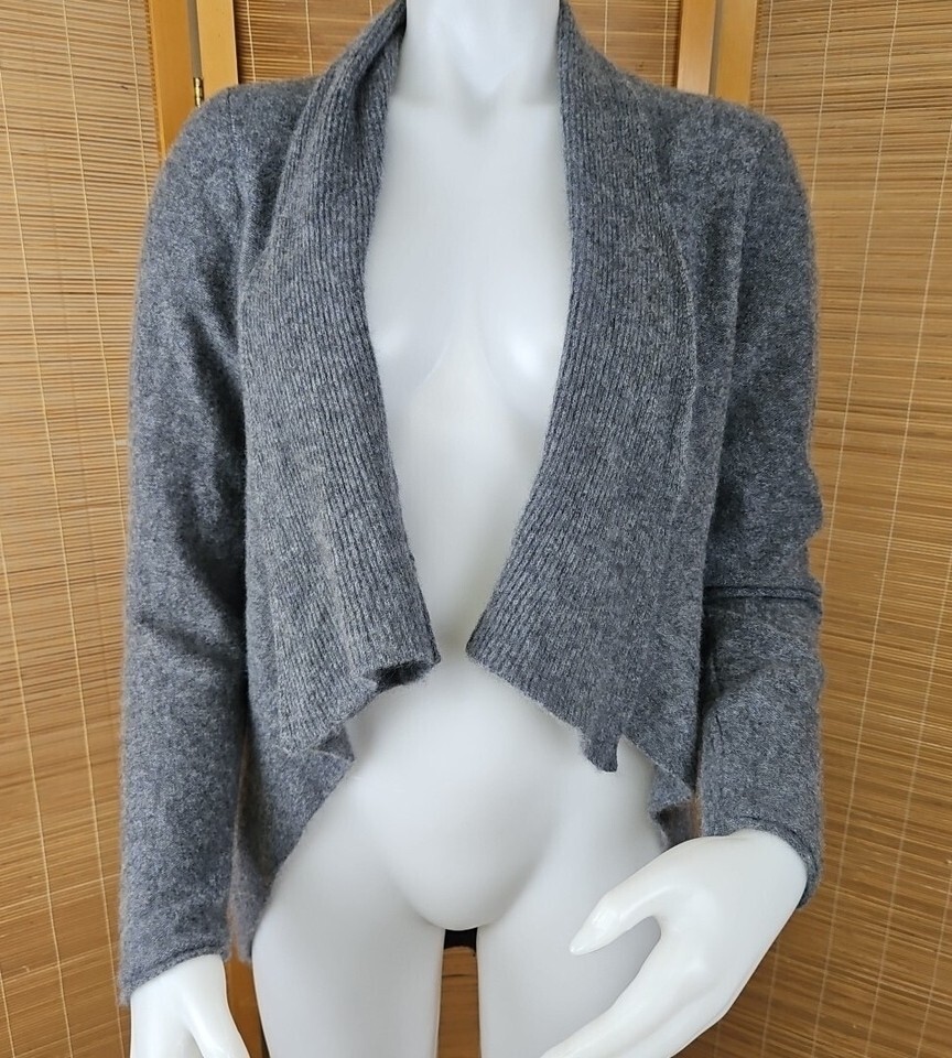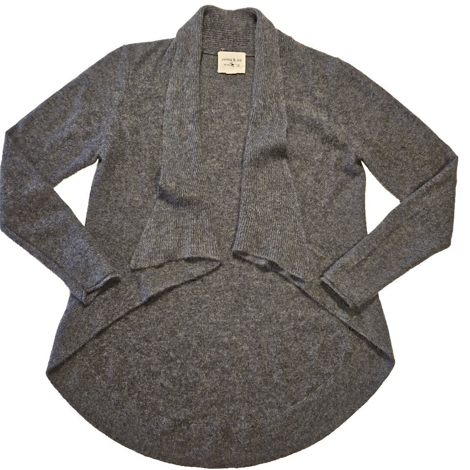 Emma Ivy Cashmere Sweater Womens L Open Front Cardigan Gray Heather Shawl Collar