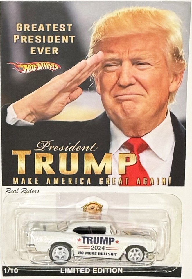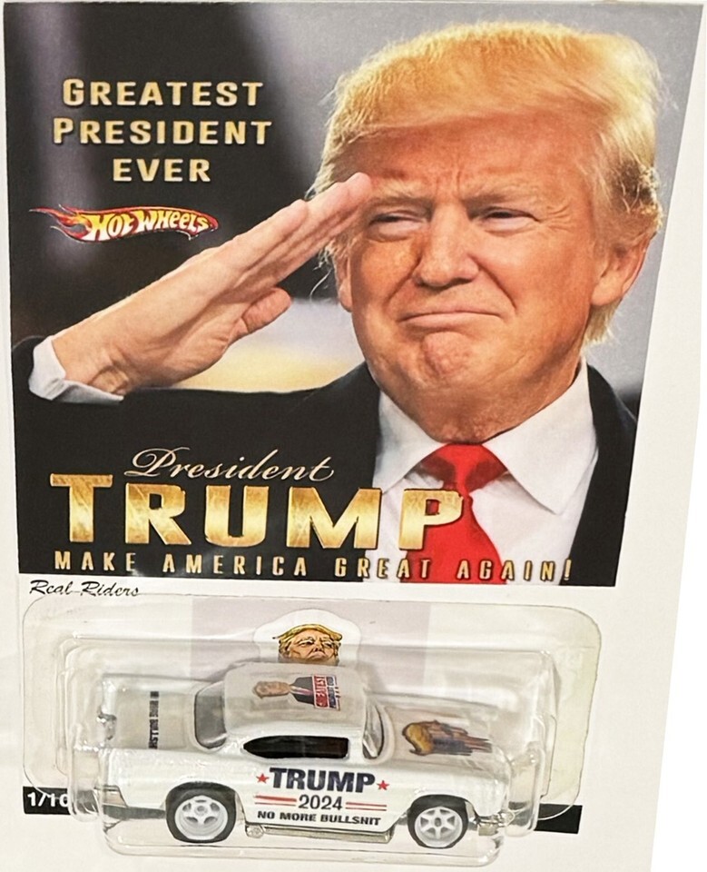 White '57 CHEVY 2024 Donald Trump MAGA Series Custom Hot Wheels Exclusive Limited Edition Car w/ Real Riders Rubber Tires.