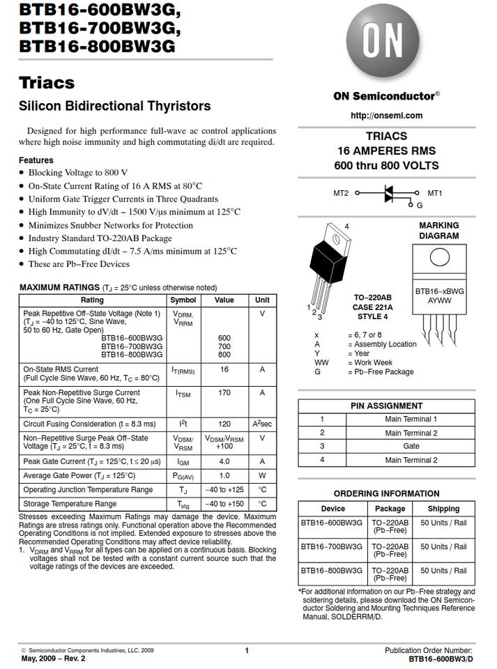 5Pcs BTB16-800BW3G Onsemi 800V Triac 16A and 18 similar items