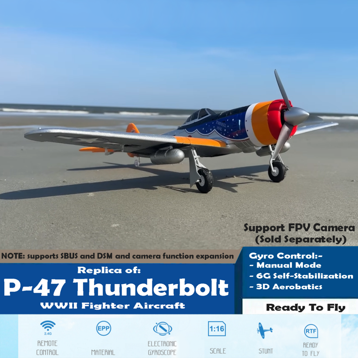 The RC Airplane is a scale 1:16 replica P47 Warbird Aircraft
