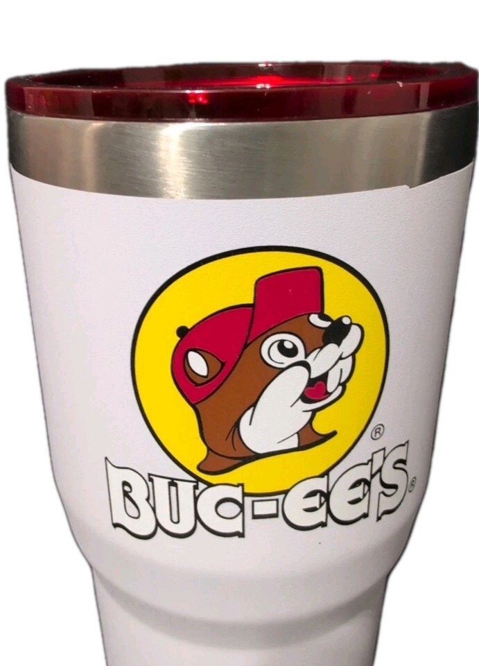 Features double-wall vacuum insulation to keep drinks hot or cold for hours, with a clean Matte white finish and Buc-ee?s logo.