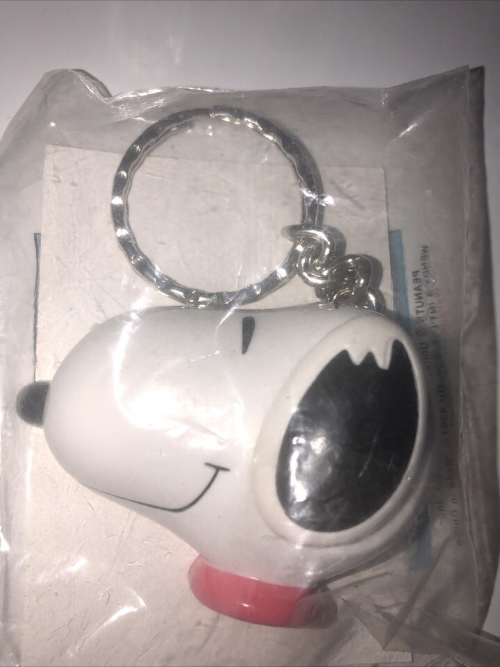 This item is a Wendy's Peanuts 50th Anniversary Snoopy Kids Meal Toy ( key chain ) #4 featuring characters Snoopy and Woodstock from the Peanuts TV show. Made of polyester material, the plush animal toy stands at 3.5 inches tall and 2.5 inches wide, with a white and yellow color scheme. It is part of the Wendy's Peanuts franchise collection and comes with a certificate, making it a collectible piece for fans of the Peanuts animation series. This specific toy was manufactured in China.