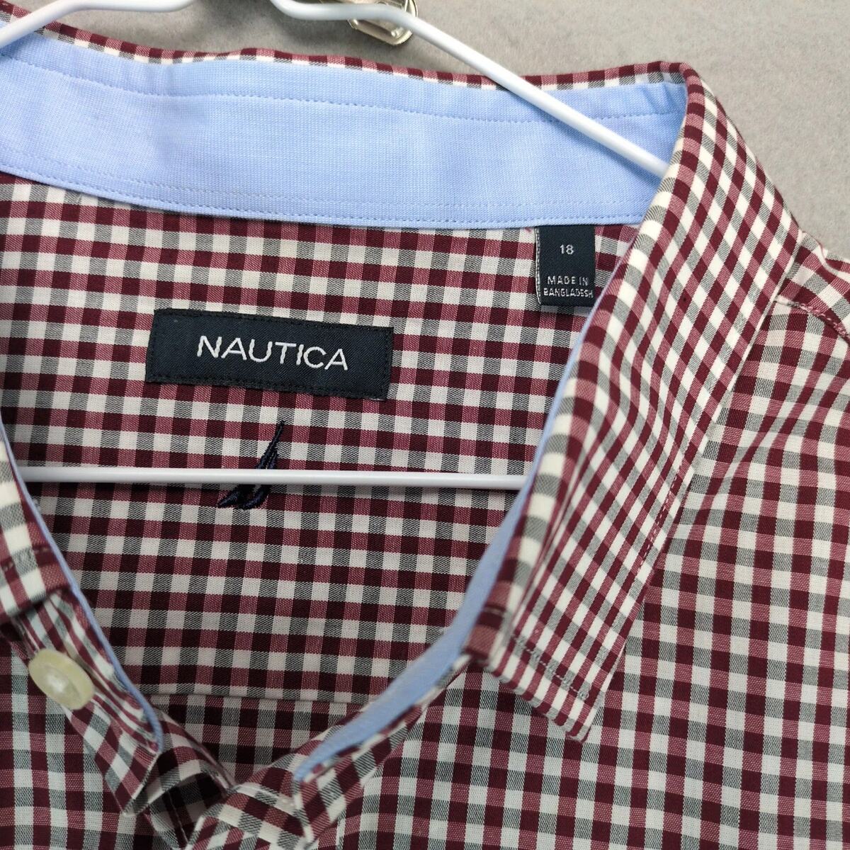 NWT Nautica Classic Fit Red Check Men's Dress Shirt 34/35 18 Neck Long Sleeve XL