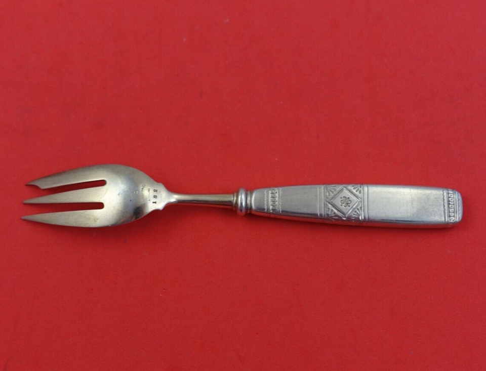 Sterling silver hollow handle Oyster Fork Gold Washed and Bright-Cut 5 3/8" marked #182 by Tiffany and Co. It is monogrammed (monos vary) and is in excellent condition.