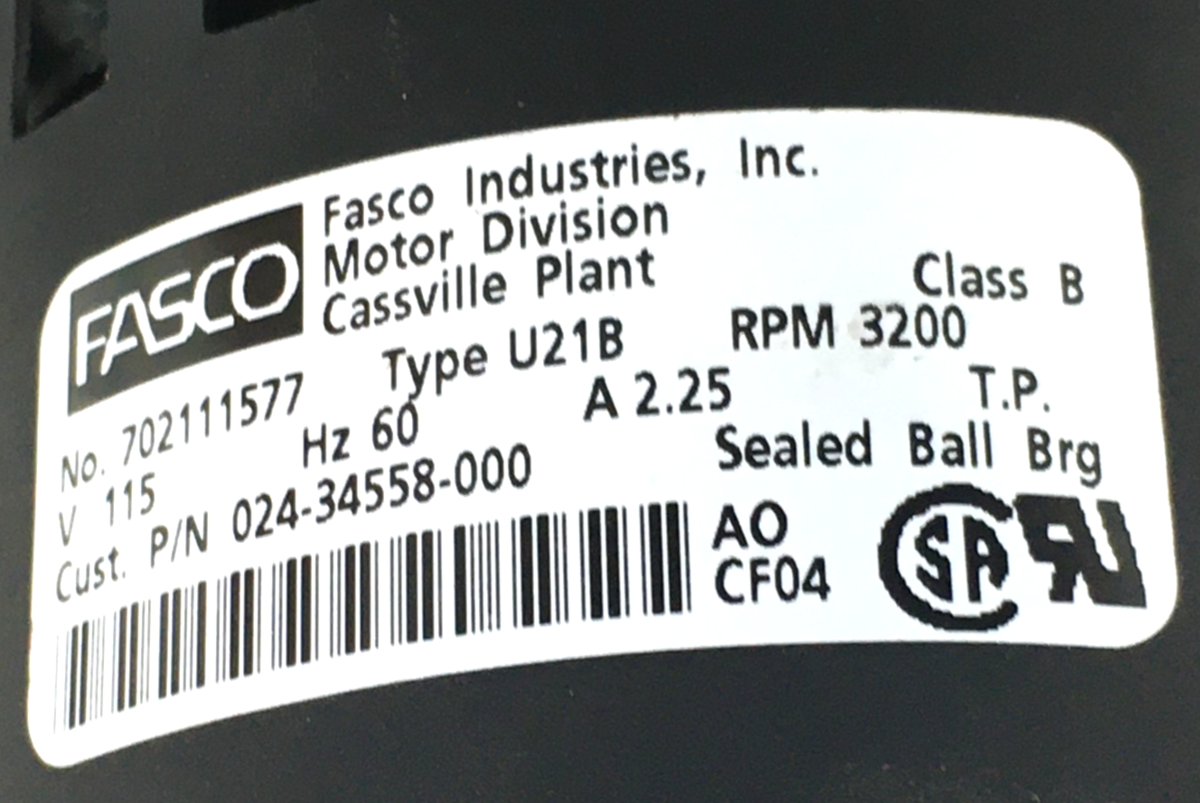 This is FASCO 702111577 Draft Inducer Blower Motor 024-34558-000 115V 3200 RPM 60 HZ used part.