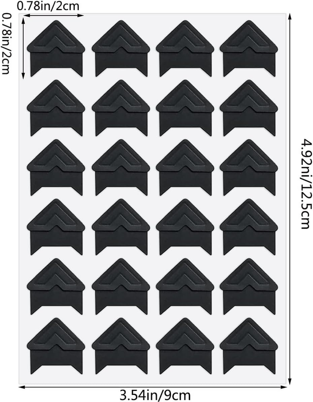 Size:Every piece of photo corner measures approx. 20mm x 20mm(L x W).The color of the corner of the photo is black.