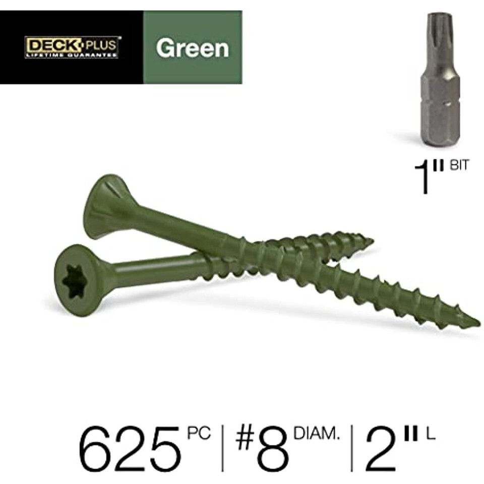 Deck Plus 48400 Wood Screws #8 x 2", Green, and similar items