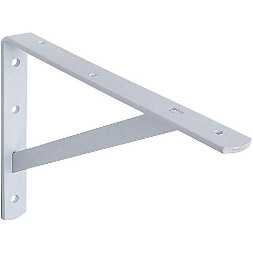 This heavy duty steel bracket holds up to 500 lbs each - one of the strongest brackets available! Perfect for shelves in the laundry room, shop or garage. Your choice of white or black epoxy finish provides a clean, low profile appearance. Brackets are made from heavy, 7/32" thick steel. Mounting hardware (5/16" x 3" lag bolts recommended) not included. Technical Details Heavy 7/32" steel Finished in white or black Available in three sizes Sold individually Mounting hardware not included