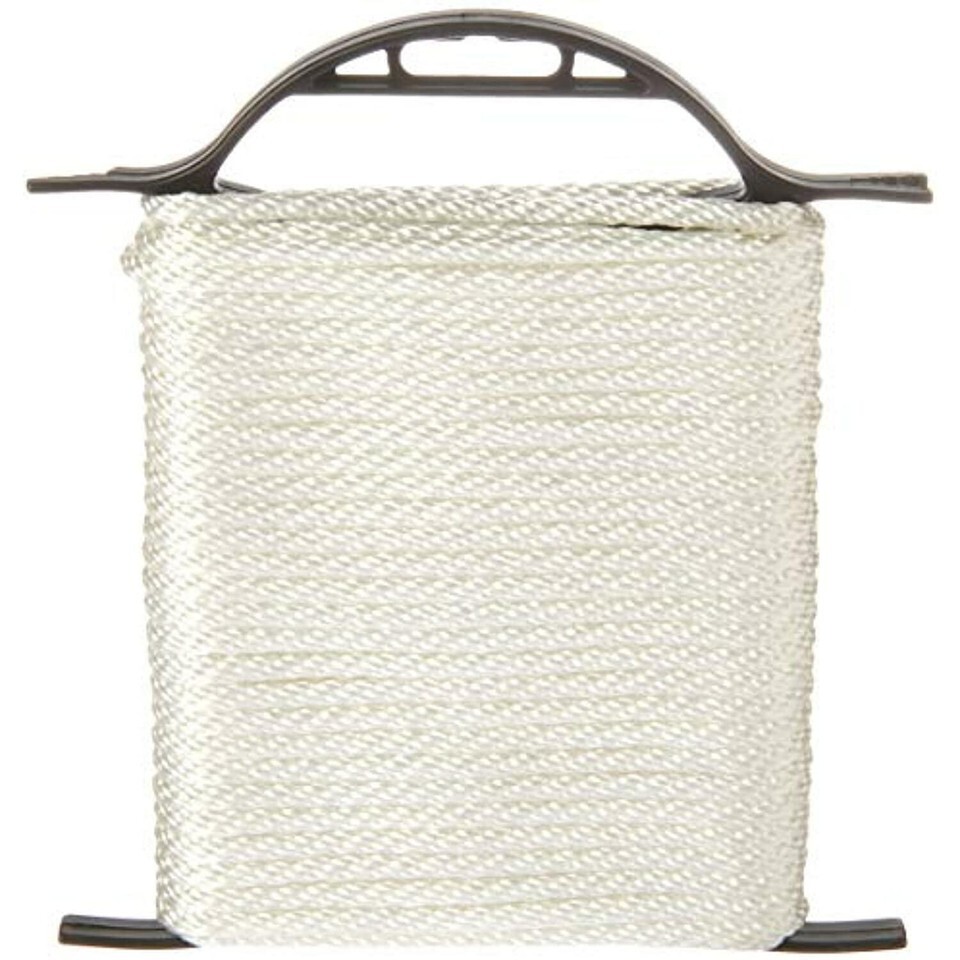 Tru-guard, 1/4 inch x 50', white, smooth braid nylon polyester rope, 70 lb, safety work load, comes on a Winder.