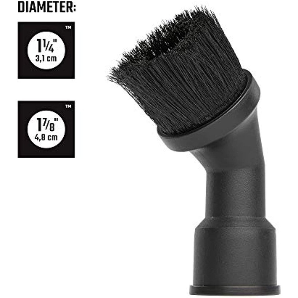 The CRAFTSMAN DUAL-FIT Dusting Brush fits both 1-1/4 in. and 1-7/8 in. hoses and is ideal for surface cleaning. With this tool, you'll be able to collect dust and debris on more intricate surfaces like vents and coils, window sills, and light fixtures. This dusting brush tool fits CRAFTSMAN and most other shop vacuums with a 1-1/4 in. or 1-7/8 in. hose.