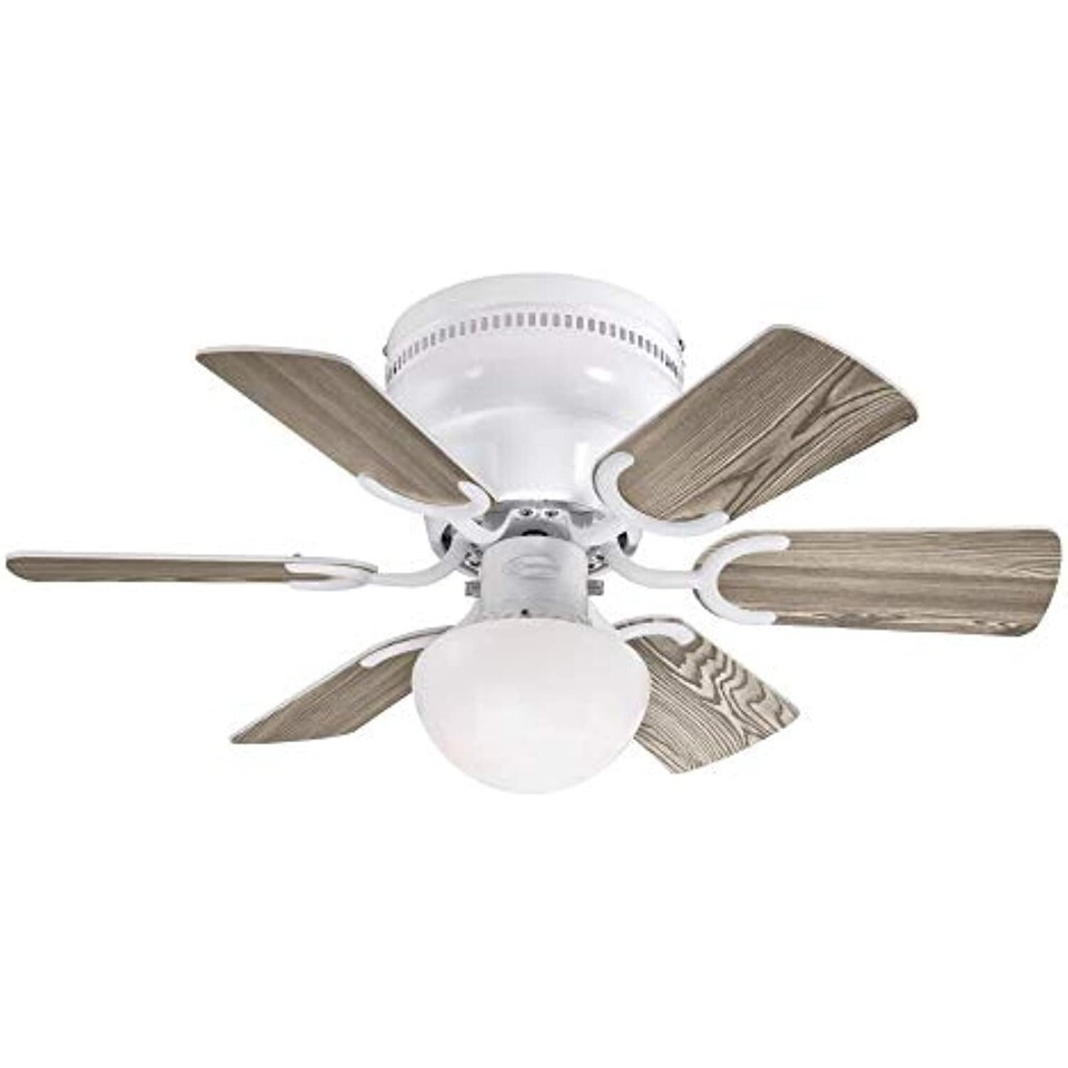 Enjoy classic style and year-round comfort in any small room with the Westinghouse Petite indoor 30 inch ceiling fan. The sleek white fan finish provides a clean look. Reversible blades in complementary finishes of white and white washed pine give you warm and neutral wood tones to coordinate with the fan. The ceiling fan light kit with LED and opal mushroom glass adds energy-efficient illumination and charm. The Petite flush mount ceiling fan is perfect for rooms with low ceilings, from a small kitchen to a child's bedroom. Product reference number 72308.