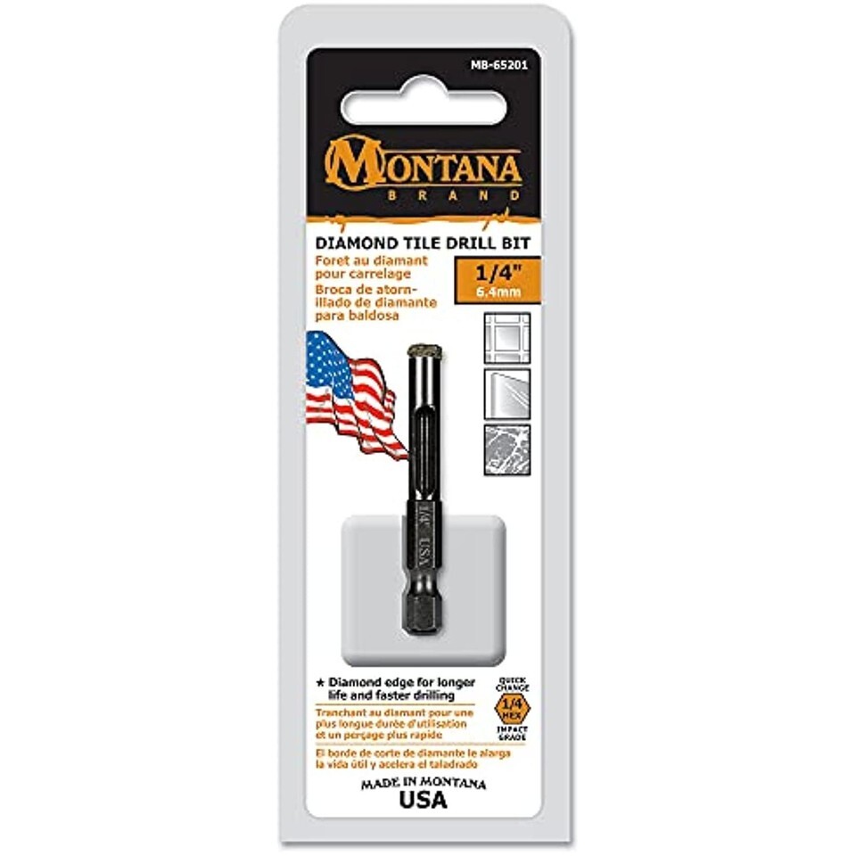 Montana Brand Diamond Tile drill bits provide outstanding performance in ceramic, porcelain, granite, slate, marble, glass and most all hard surface materials. Drill holes for water supply lines, drains, electrical/wiring, towel bars and fixture installations. Also great for glass and decorative crafts.