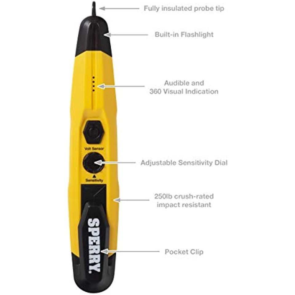 Sperry Instruments VD6509 Adjustable Non-Contact Detector with Flashlight, cETLus Listed, Lifetime Warranty, 1, 5 Clams/Master Voltage Tester, yellow