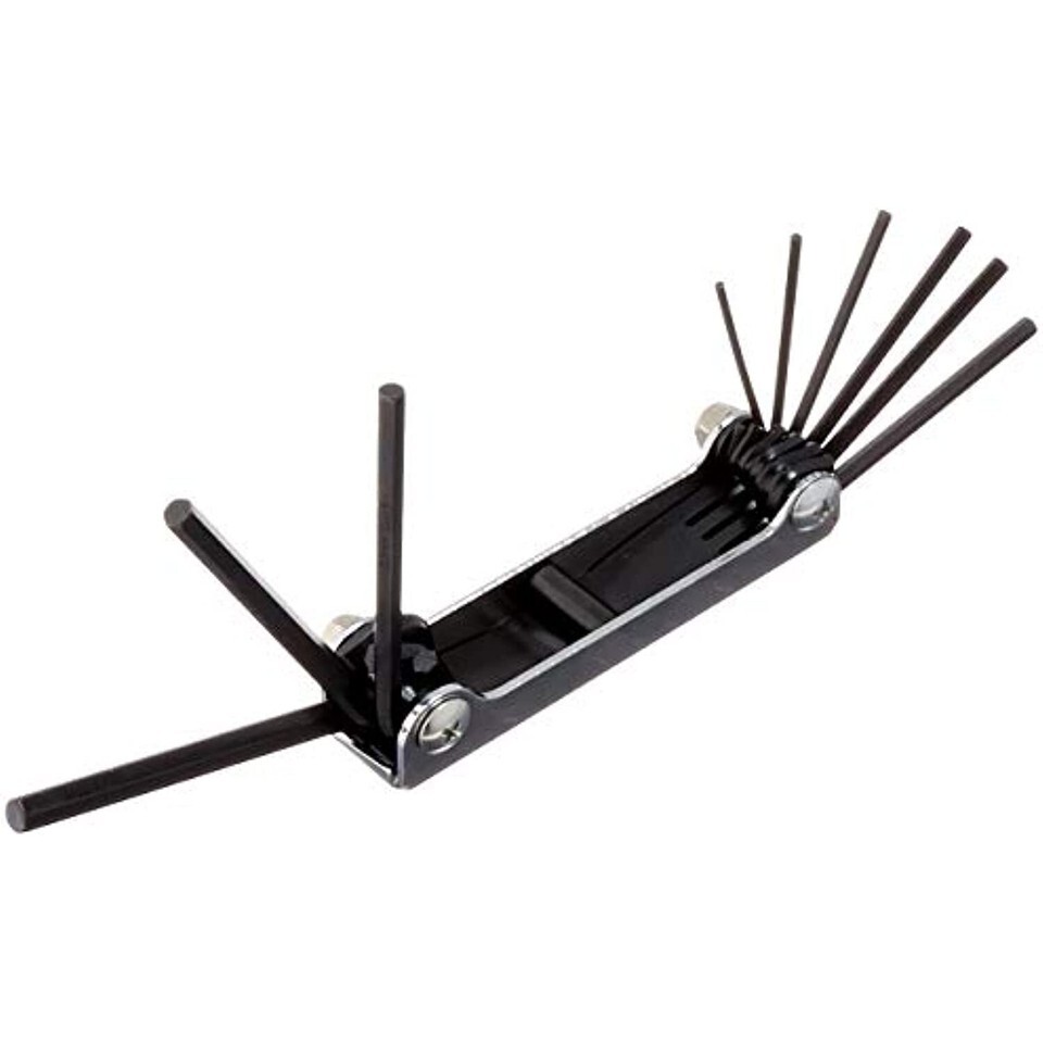 Master mechanic, 9-in-1, fold up, hex key set, includes sizes: 5/64", 3/32", 7/64", 1/8", 9/64", 5/32", 3/16", 7/32" 1/4", sizes are clearly marked on the handle for easy identification.