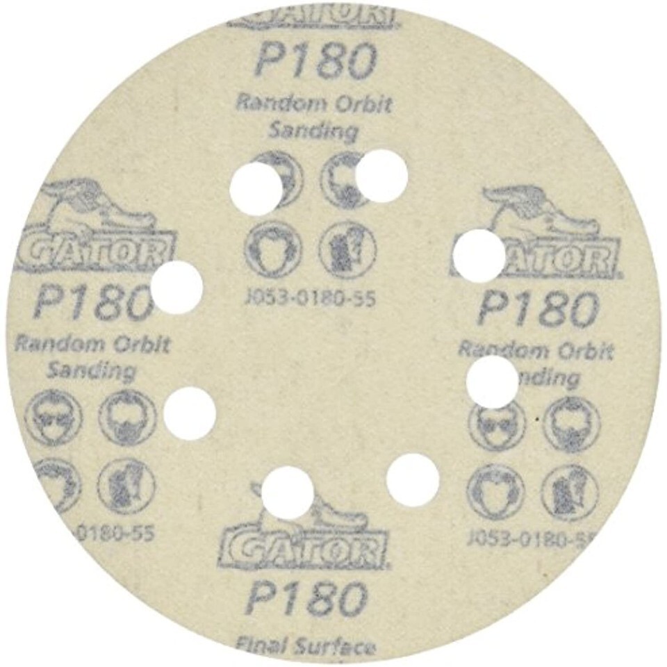 Product Description Gator Grit 5 Pack 5" 180 Grit Very Fine 8-Hole Vented Sanding Disc. Sanding disc is ideal for final surface preparation before applying finishes. Fits 8-hole random orbit sanders including Skill, Bosch, Band, Dewalt, Makita and Milwaukee. The vented 8-hole pattern matches perfectly with the sanders pad to allow for maximum dust collection. For use on wood, metal, drywall, fiberglass, or painted surfaces. From the Manufacturer Gator Grit 5 Pack 5" 180 Grit Very Fine 8-Hole Vented Sanding Disc. Sanding disc is ideal for final surface preparation before applying finishes. Fits 8-hole random orbit sanders including Skil, Bosch, BandD, Dewalt, Makita, and Milwaukee. The vented 8-hole pattern matches perfectly with the sanders pad to allow for maximum dust collection. For use on wood, metal, drywall, fiberglass, or painted surfaces