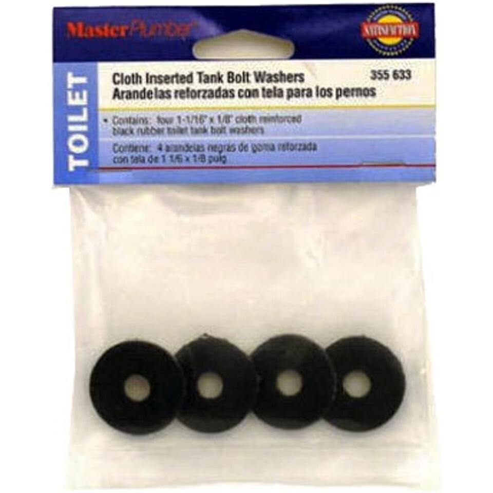 Product Description Master Plumber 355633 Black Rubber Tank Bolt Washer 4 Pack is a pack of four tank bolt washers. Black rubber construction. Bagged. From the Manufacturer Master Plumber 355633 Black Rubber Tank Bolt Washer 4 Pack is a pack of four tank bolt washers. Black rubber construction. Bagged.