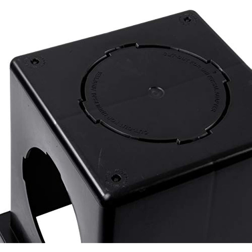 Keyed side openings lock outlet adapters in place; knockout on bottom for additional keyed opening if needed