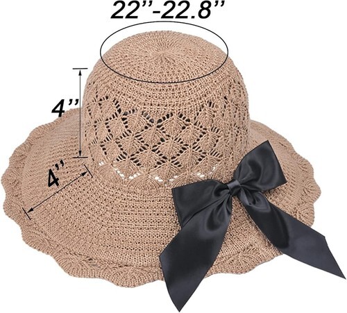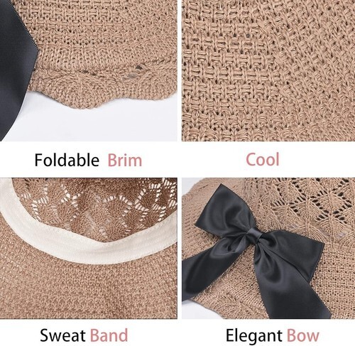 Selufiko Summer Sun Hat Women Wide Brim UV Protection Straw Windproof Rope Khaki