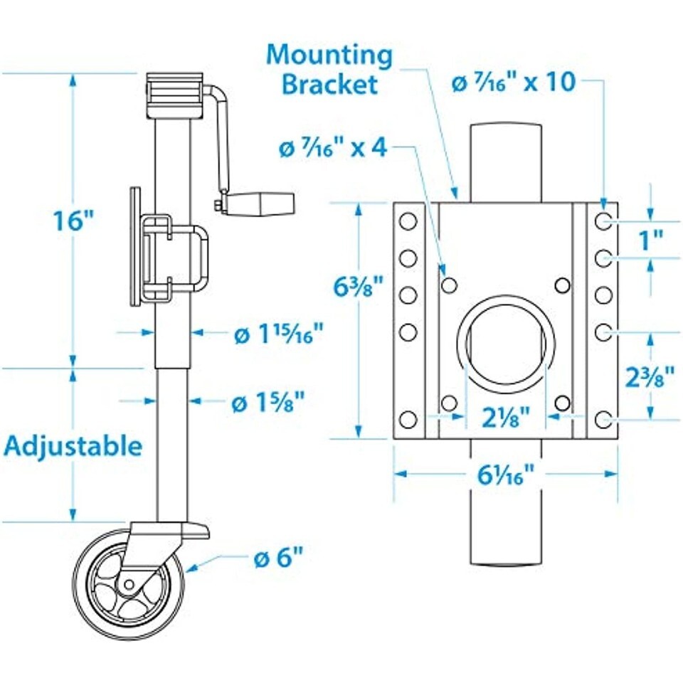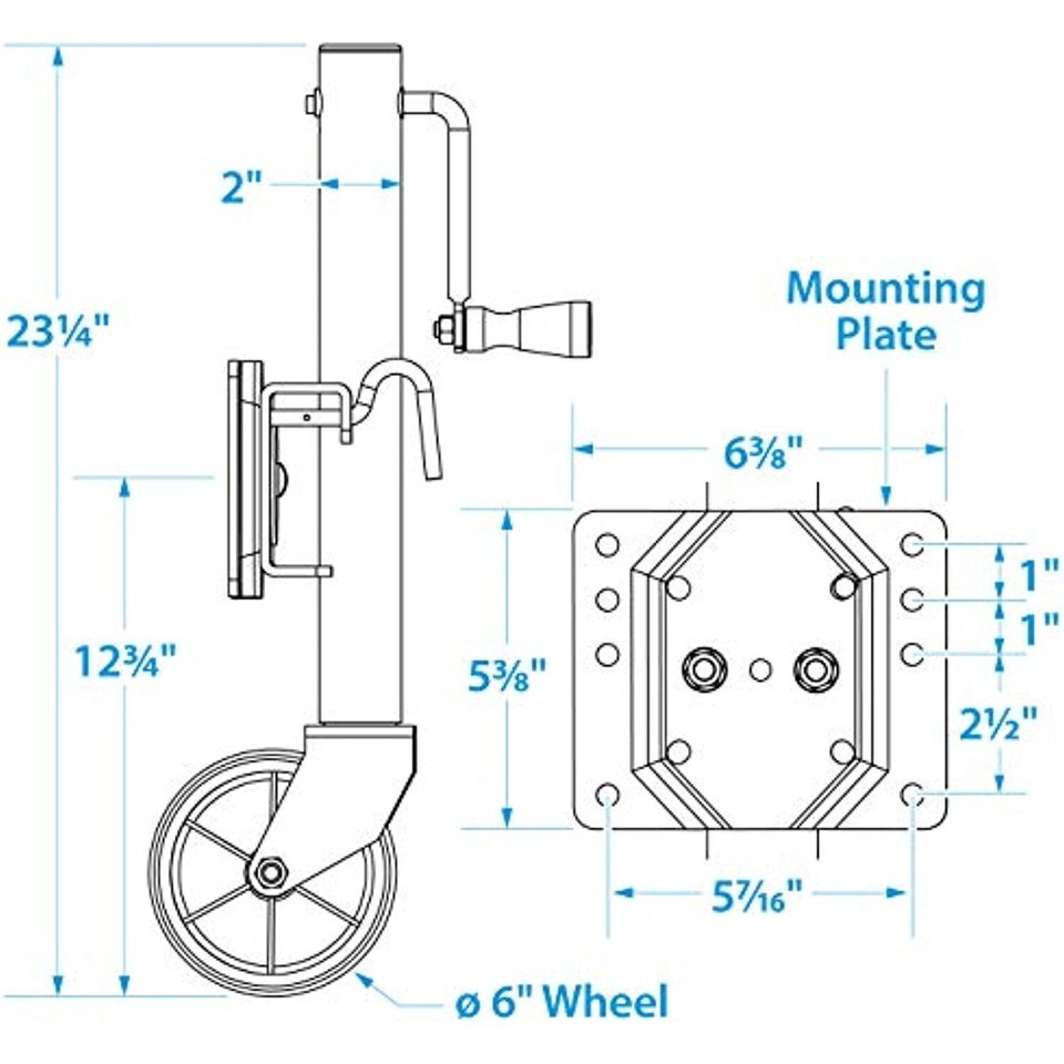 This side-crank, fold up trailer jack easily swings up and out of the way when not in use. Spring loaded latch locks and releases the jack from one position to the other. Allows for 10 inch lift travel, with maximum lift of 24 inches. Fits up to 3 inch x 5 inch trailer tongue. Seachoice is committed to delivering quality marine accessories and OEM replacement parts to satisfy fishing, boating and watersports enthusiasts worldwide. Seachoice is run for and by boaters offering a wide-ranging product line while remaining affordable.
