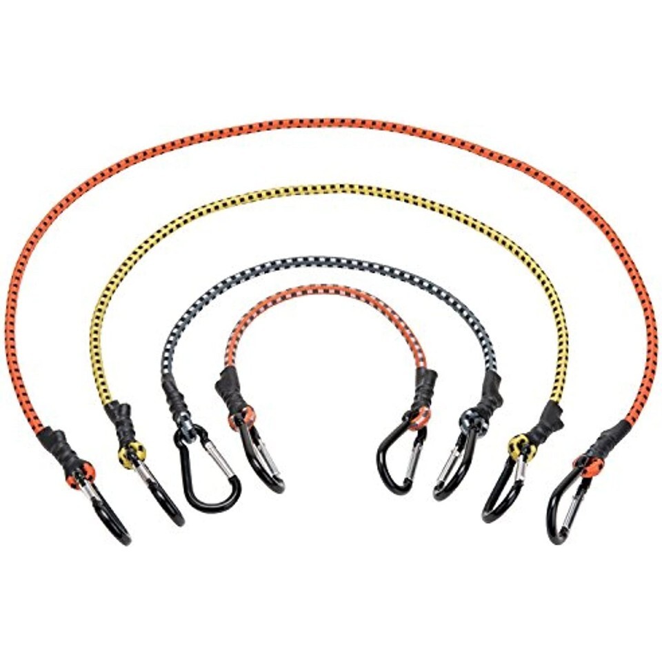 Weather Resistant: Keeper Carabiner Bungee Cords are designed to withstand UV rays and weather damage. Each multi-pack contains (3) 18 in., (3) 24 in., (3) 36 in., and (3) 48 in. bungee cords.