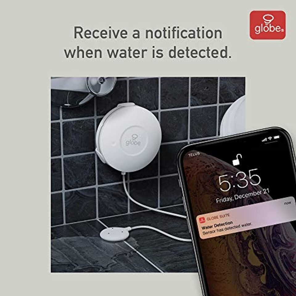 YOUR HOME, SAFER: Get alerted the minute water leakage occurs. The water sensor has a built in alarm that's triggered when water is detected. You'll receive instant notifications in the GLOBE SUITE App so you can easily prevent water damage from flooding, water spills and bursting pipes.