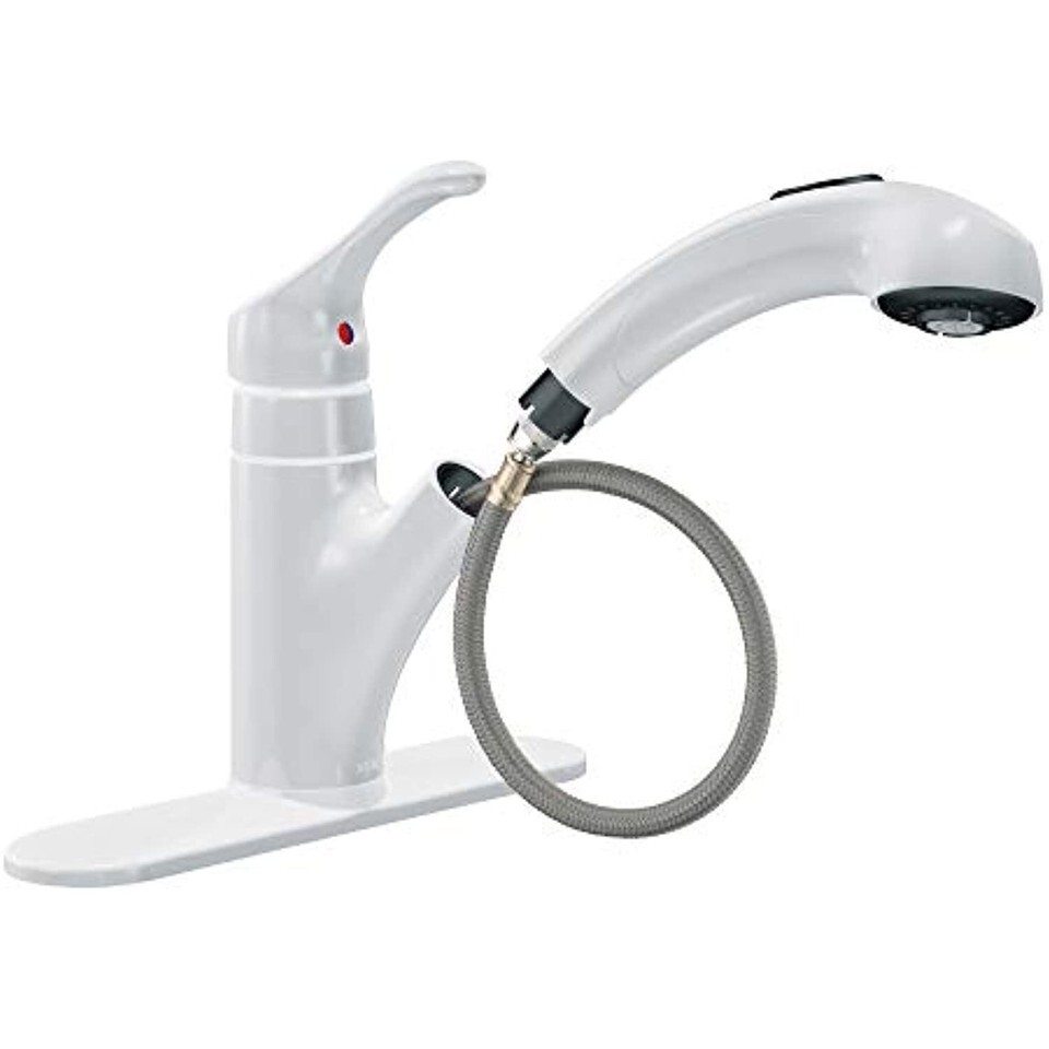 ADA Compliant: 1, Commercial: 0, EPA WaterSense Approved: 0, Faucet Centers: Single Hole, Faucet Holes: 1, Faucet Installation Type: Single Hole, Filtering: 0, Handle Type: Lever, Handles Included: 1, Mounting Type: Deck Mount, Number of Handles: 1, Pullout/Pulldown Spray: 1, Side Spray Included: 0, Soap Dispenser Included: 0, Spout Height in Inches: 5.56, Spout Reach in Inches: 9.63, Touch to Operate: 0, Touchless Operation: 0
