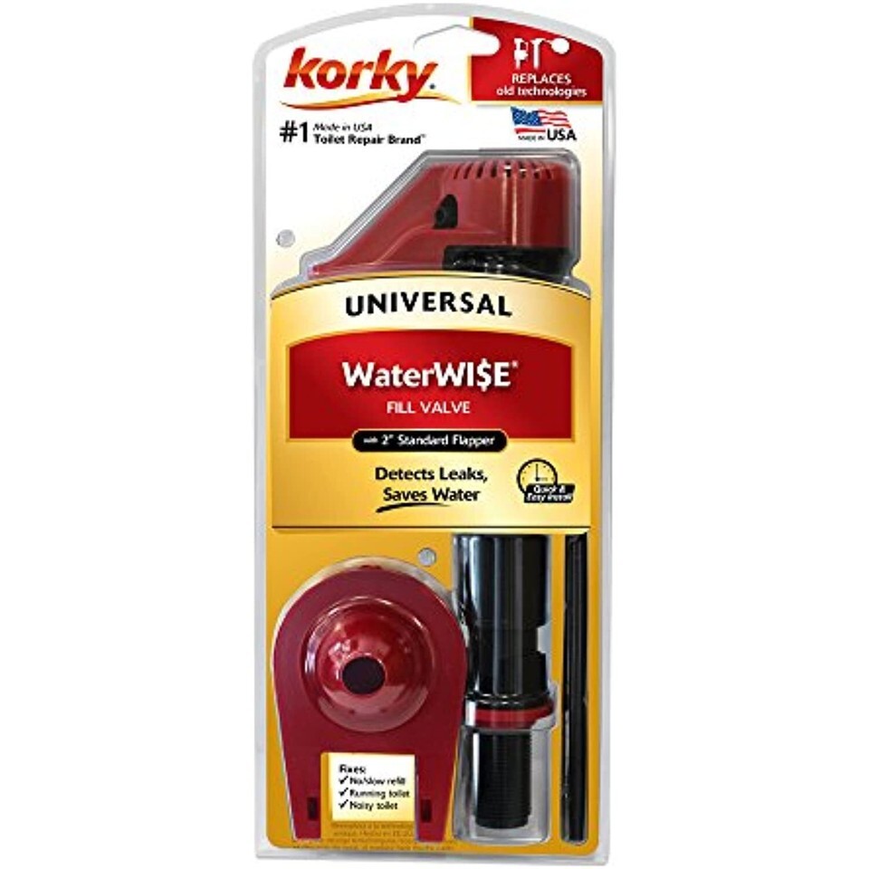 Product Description Designed to minimize costly water loss, the WaterWI$E Fill Valve is the only dual shut-off fill valve that detects flapper leaks and hang-ups. Saves water due to leaks by not refilling the tank during a slow flapper leak and automatically shuts off if flapper is stuck open. Designed to fit more toilets, this toilet fill valve adjusts from 7-3/4" to 13-1/2", fitting large and small tanks. The WaterWI$E Fill Valve is quieter than other fill valves. Included in the kit is the Korky Plus 2 in. toilet tank flapper. The universal flapper is constructed from durable rubber and offers chlorine . Easy to install, the 818Z includes: (1) 528Z Fill Valve, (1) 2001 Flapper, (1) Refill Tube, (1) Metal Refill Tube Clip, (1) Mounting Nut, (1) Cone Washer, (1) Coupling Nut, (1) Tamper Proof Key and (1) Instructions. From the Manufacturer Designed to minimize costly water loss, the WaterWI$E Fill Valve is the only dual shut-off fill valve that detects flapper leaks and hang-ups. Saves water due to leaks by not refilling the tank during a slow flapper leak and automatically shuts off if flapper is stuck open. Designed to fit more toilets, this toilet fill valve adjusts from 7-3/4" to 13-1/2", fitting large and small tanks. The WaterWI$E Fill Valve is quieter than other fill valves. Included in the kit is the Korky Plus 2 in. toilet tank flapper. The universal flapper is constructed from durable rubber and offers chlorine. Easy to install, the 818Z includes: (1) 528Z Fill Valve, (1) 2001 Flapper, (1) Refill Tube, (1) Metal Refill Tube Clip, (1) Mounting Nut, (1) Cone Washer, (1) Coupling Nut, (1) Tamper Proof Key and (1) Instructions.