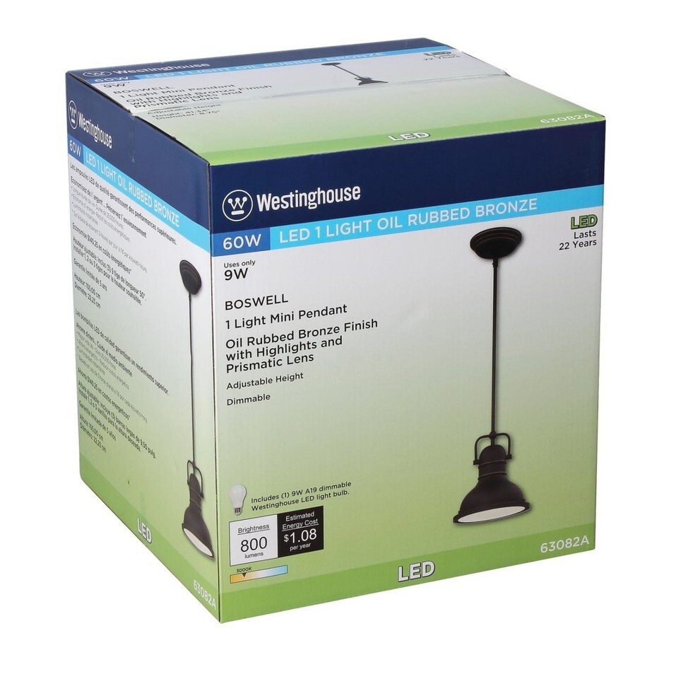 Westinghouse 63082A Boswell One-Light LED Indoor Mini Pendant, Oil Rubbed Bro...