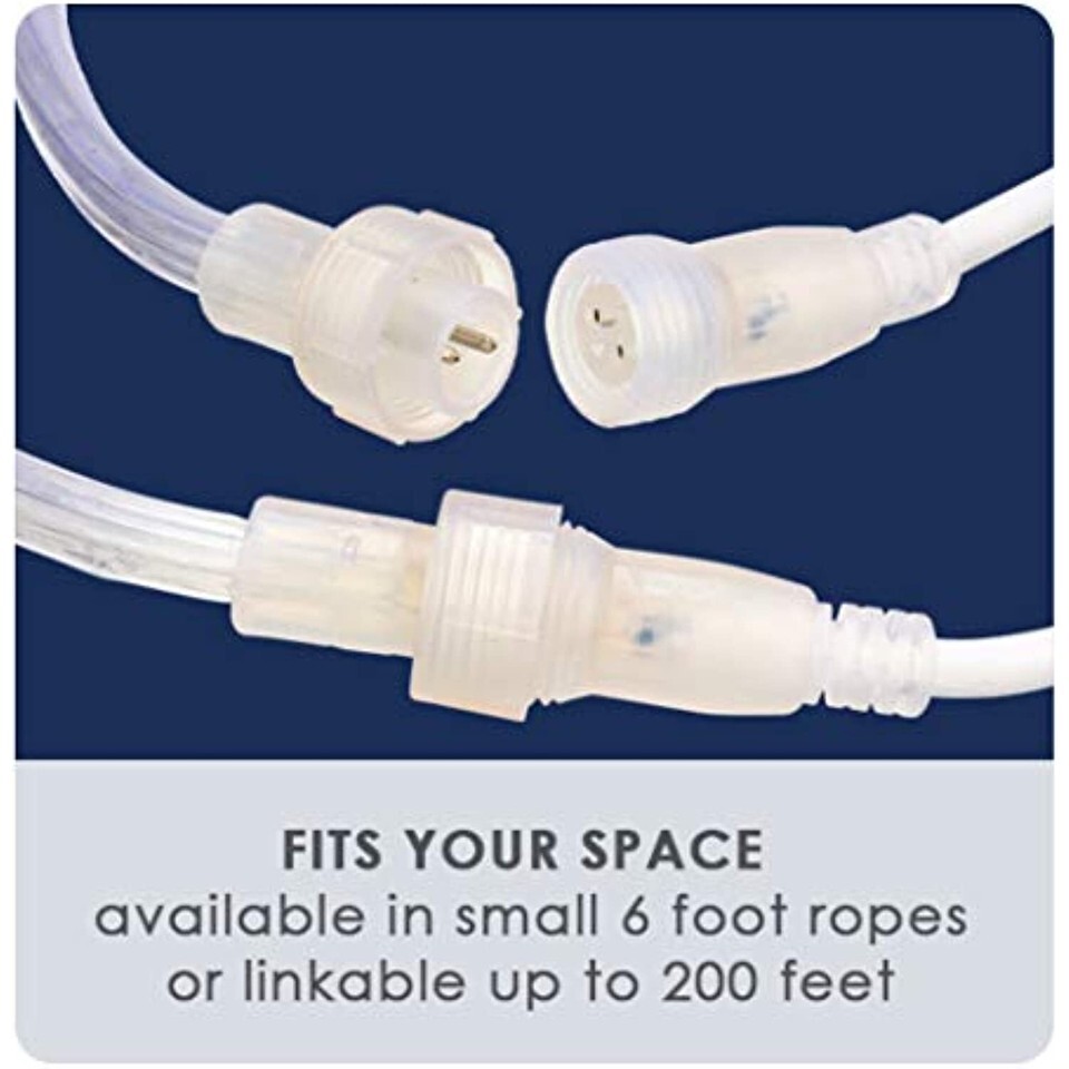 The Wester Indoor/Outdoor LED Rope Lights feature flexible, heavy duty, UV inhibiting PVC tubing that resists yellowing and cracking. Available in 6', 12', 24' and 48' lengths, the energy efficient LED rope lights use about 80% less energy than their incandescent cousins. Connect additional kits for up to 300 feet of continuous light, enough to line a football field! Perfect for inside homes to line steps, bottom or top of cabinets, valances, sliding doors, windows or entertainment center. Commonly used outdoors to outline decks, patios, pathways, stairs.