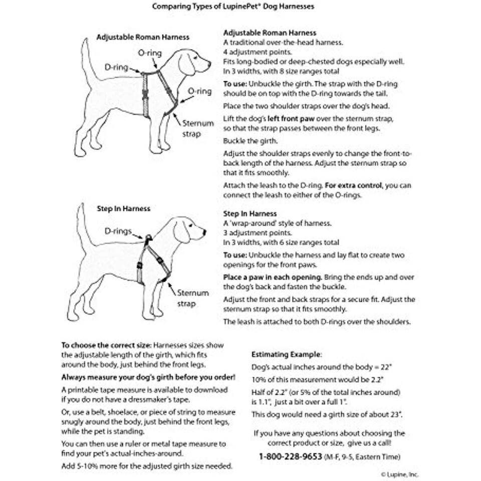 All Lupine products are proudly built in Conway, New Hampshire and Guaranteed (Even if Chewed). Made from jacquard woven nylon, with the pattern woven into the webbing (never printed or sewn on!) 3/4? wide harnesses are suitable for the widest range of dogs, from terriers to sporting breeds. Features strong bar-tack stitching, welded D-ring and a custom designed side-release buckle. In a range of fashion-inspired patterns with matching leads available. In two girth size ranges. To determine size, measure snugly around the dog, just behind the front legs, then add an extra 5-percent for a comfortable fit. Machine wash, warm water, mild soap (no bleach or bleach alternative). Air dry. Lupine products are not recommended for tie-out.