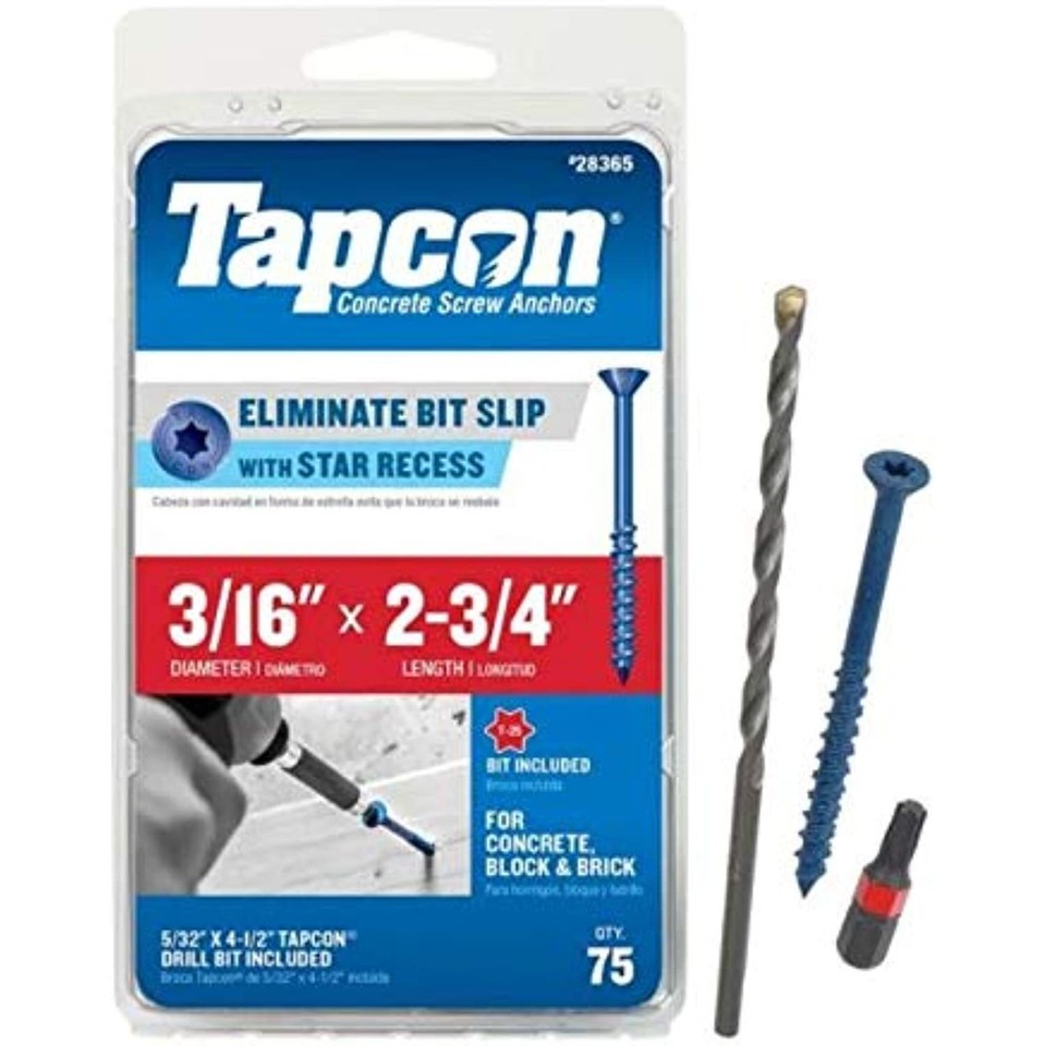 As the original concrete screw anchor that revolutionized the construction world, Tapcon brand concrete anchors deliver the ease of use, superior precision and the unparalleled performance that professionals demand. With a new star recess to eliminate bit slip, Tapcon drives with ease and the patented thread design allows for quick and successful installation no matter the type masonry substrate anchored into. Use Tapcon concrete screw anchors for wood framing to concrete, electrical equipment, furring strips and many other applications that require fastening into brick, block or concrete.