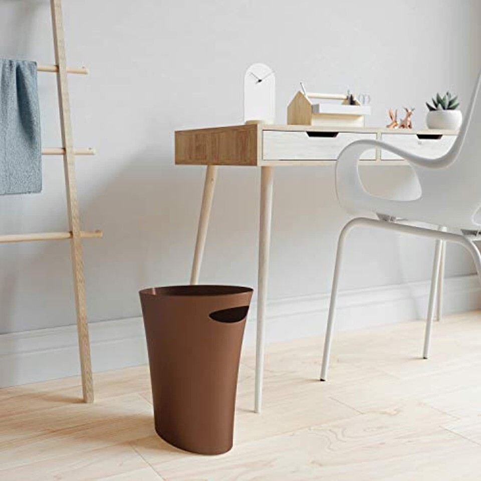 If you are searching for a small bathroom garbage can, kitchen trash can, or office trach can, that is stylish and modern this may be the perfect solution for you. Introducing the Skinny Can from Umbra Skinny is a slim waste basket that makes a statement. A wildly popular follow up to the best-selling and award-winning Garbing trashcan, Skinny offers all the most loved features of Garbing, but with a narrow, streamlined footprint that makes it ideal for small spaces. Available in a wide array of stylish colors and unique finishes to match any decor, Skinny features a modern profile that looks just as impressive in your bathroom or bedroom as it does by your desk at the office. Made from durable polypropylene, Skinny trash can is easy to wipe clean and designed to stand up to everyday use. The built-in handle makes it easy to pick up and empty, while the narrow footprint allows it to easily fit into tight spaces where an ordinary bathroom wastebasket could never go. Take an everyday essential from mundane to magnificent and order your Skinny Trash Can from Umbra today! About Umbra: A global product design company providing original, modern, casual, and functional design for the home.