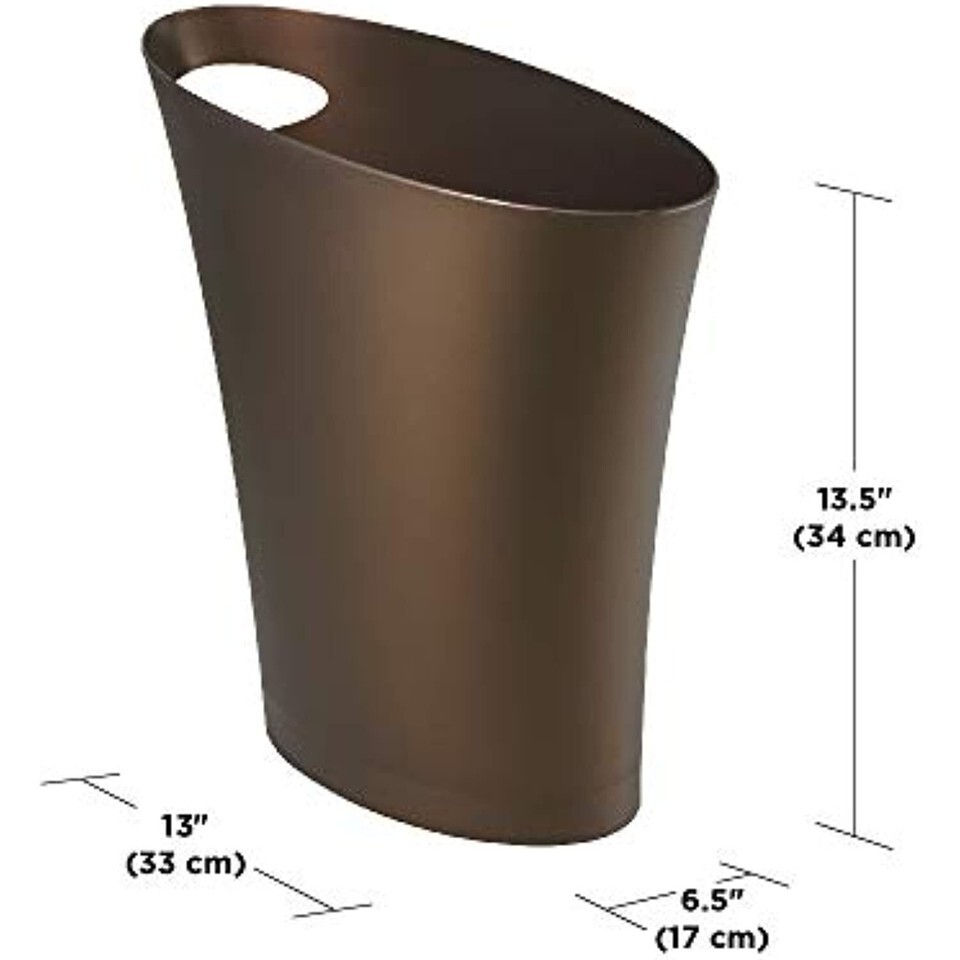 Umbra Skinny Sleek Stylish Bathroom Trash, Small Garbage Can Wastebasket for Narrow Spaces at Home or Office, 2 Gallon Capacity, Bronze