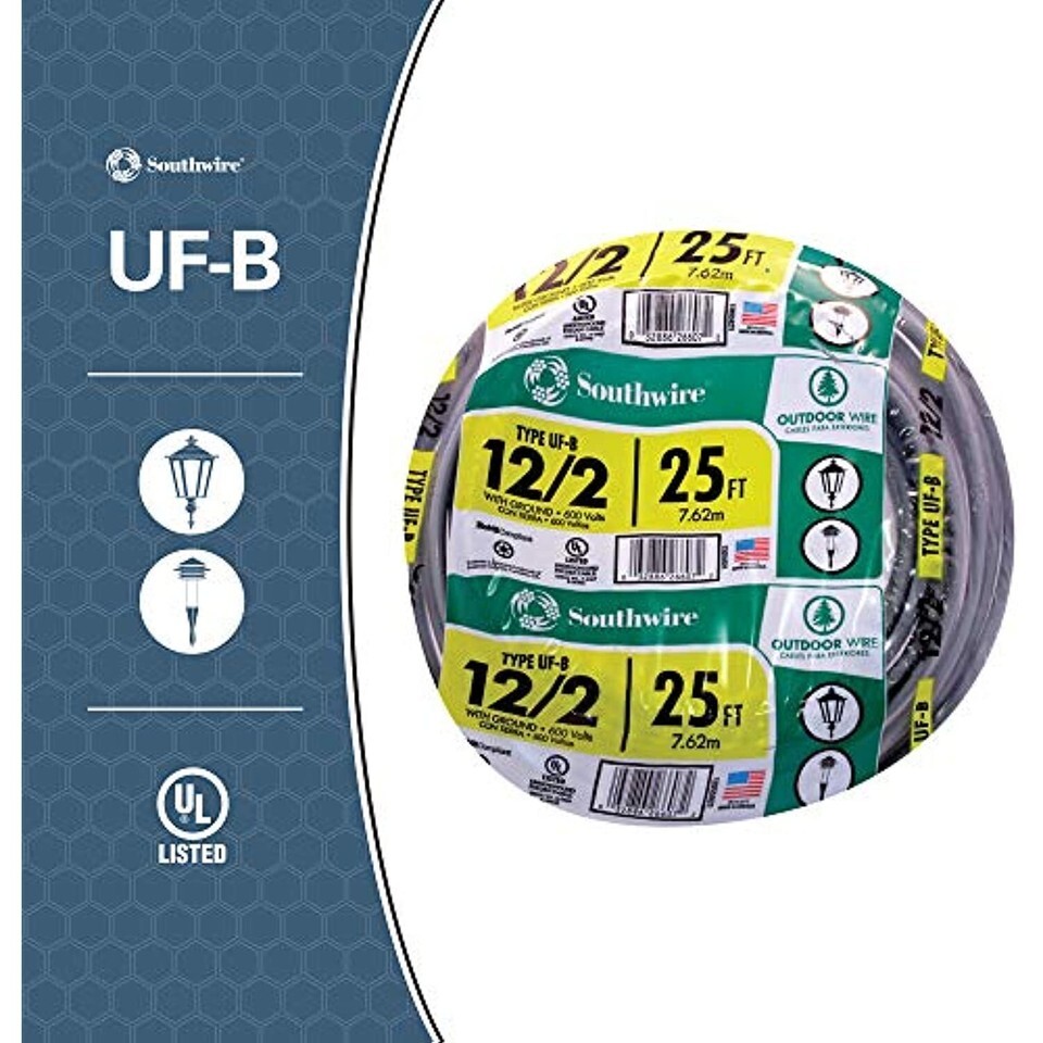 Southwire 13055921 12/2WG UF Wire 25-Foot , Gray