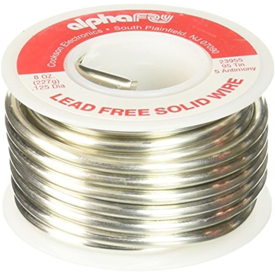 Product Description 8 oz., .125 diameter spool general purpose solder, solid wire, lead free, 95% TiN, 5% antimony. From the Manufacturer 1/2-Pound 95/5 Spool Lead-Free Solid Wire Solder.