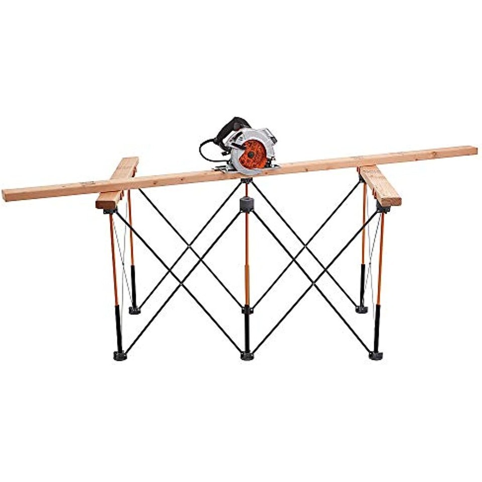 Saw-horse solution - Made of heavy duty steel construction, The centipede is a fold-able work stand that can be set up as a large portable workbench at any job site