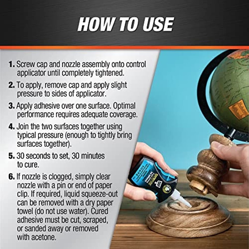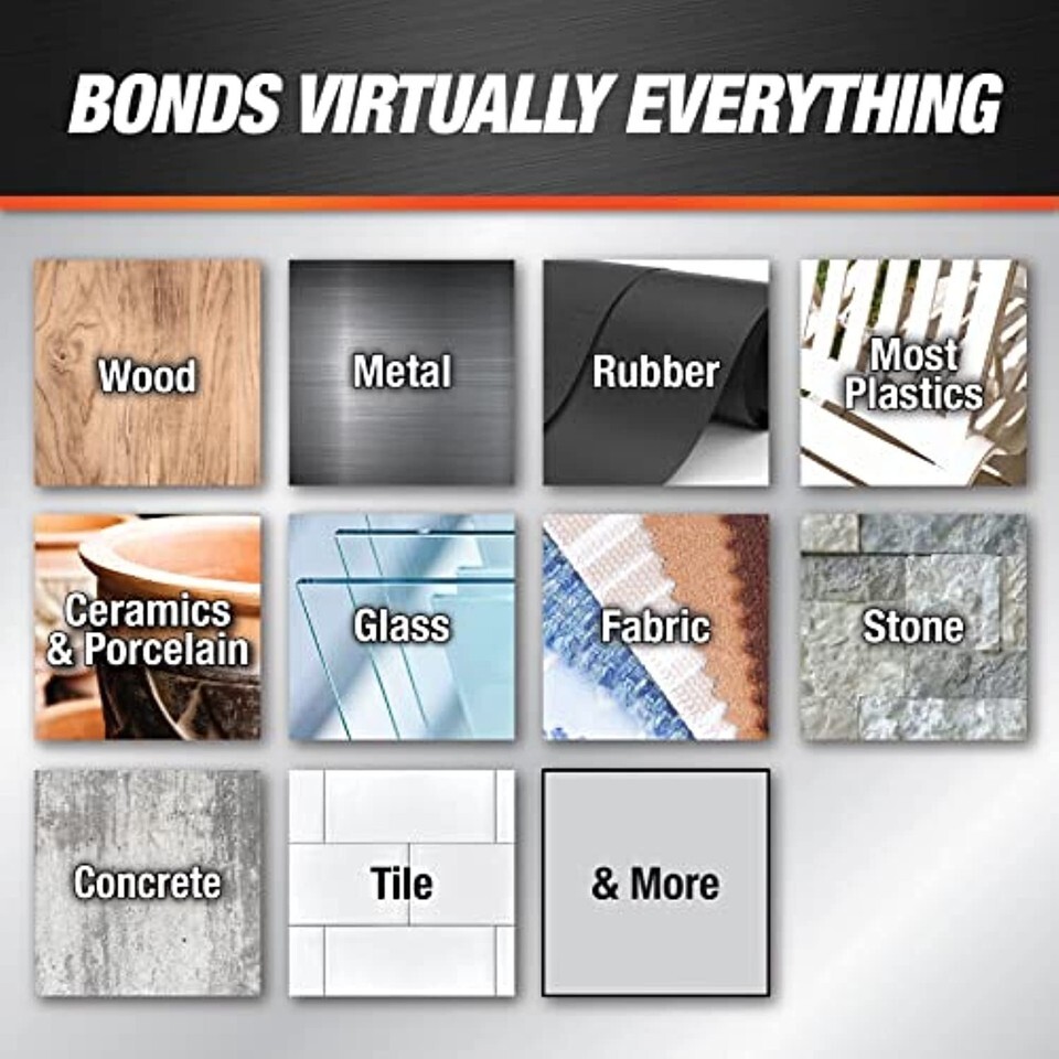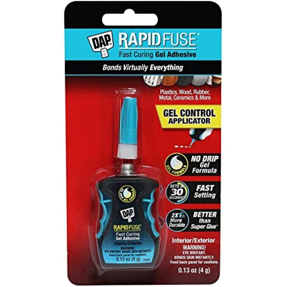 DAP RapidFuse Fast Curing Gel with Gel Control Applicator is easy to use, sets in 30 seconds, and cures in 30 minutes. Bonds virtually all materials, with a professional-strength bond that is 40% stronger than Polyurethane glues. Plus, unlike traditional super glues, objects can be repositioned within 3 minutes, and the bond won?t become brittle resulting in long-lasting durability. The bond is clear ? no expanding foam, no dripping glue, no mess. Indoor outdoor use.