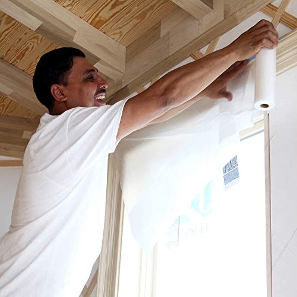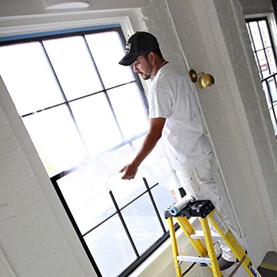 Product Description Trimaco?s Easy Mask Tape Drape Pre-taped Masking Film with KleenEdge Perfect Edge Tape is perfect protection for use in areas where you want to catch drips and overspray! Medium tack tape is applied along one edge of high-density 0.5 mil masking film. This film has a unique coating which helps create cling to the surface protected ? even in windy conditions or with spray applicators. Great for painting trim and protecting shelving during the painting process. Works alone or with Easy Mask?s QM5000 PRO Masker. From the Manufacturer This pre-taped mask film is perfect protection for use in areas where straight lines are needed. Tape is applied along one edge of high-density masking film. Unfolds to cover and protect various surfaces while painting. Measures 72-feet length by 24-Inch width by 0.5-mil thickness.