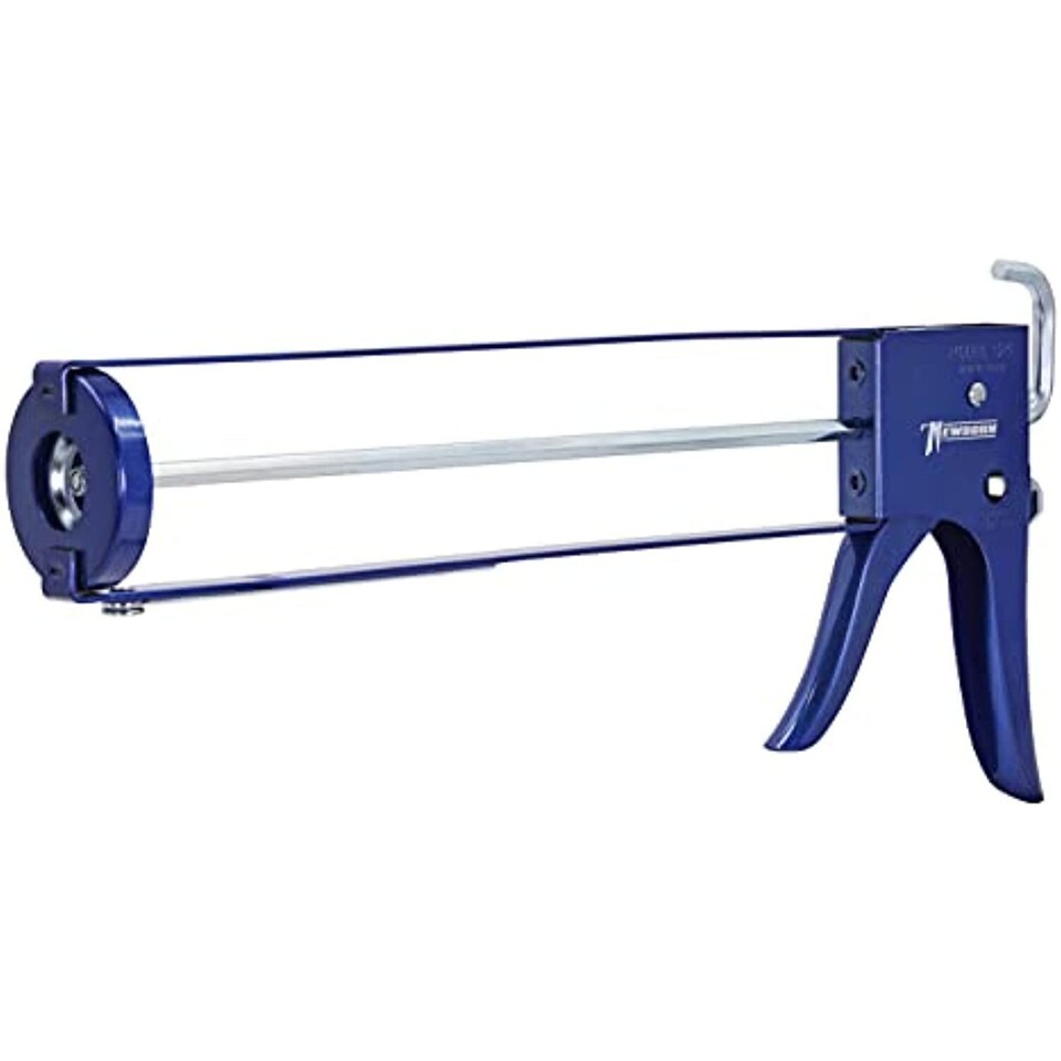 Product Description The Newborn 125 Smooth Hex Rod Parallel Frame caulking gun has a steel skeleton frame that fits 1/4-gal. cartridges and has a 10:1 thrust ratio for use with medium viscosity materials such as silicone. The smooth pressure rod requires less force and is quieter than a ratchet-style pressure rod. The hook on the back allows it to hang on a ladder, and a seal puncture tool and a spout cutter are built into the side of the gun for opening cartridges without a knife.Caulking guns, also called caulk or cartridge guns, dispense a controlled flow of products such as caulk, sealants, and adhesives from a tube or cartridge. A manual caulking gun consists of a frame which holds the tube, a trigger, and a rod which moves forward when the trigger is depressed, dispensing the product. Manual caulking guns have a thrust ratio; the higher the thrust ratio, the easier it is to dispense the caulk, sealant, or adhesive. Air-powered or pneumatic caulking guns also have a frame and a trigger, but are used with an air pressure regulator that pushes the product from the tube using air pressure instead of a rod. Newborn Brothers Company, Inc. manufactures sealant and adhesive dispensers and accessories. The company was founded in 1974 and is headquartered in Jessup, MD. From the Manufacturer Uniframe construction for greater durability. Thumb-activated pressure release stops caulking flow. Powerful piston design for trouble-free performance. With seal puncture tool, spout cutter and ladder hook. No more hand tiring ratcheting. No mess and no waste. Recommended for all grades of caulks, sealants and adhesives from heavy to light consistencies. 10:1 thrust ratio. E-Z load open front cap and cartridge retainer spring.