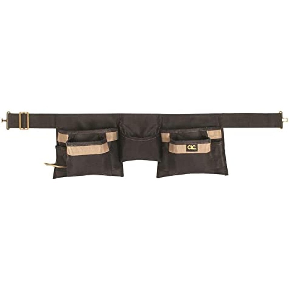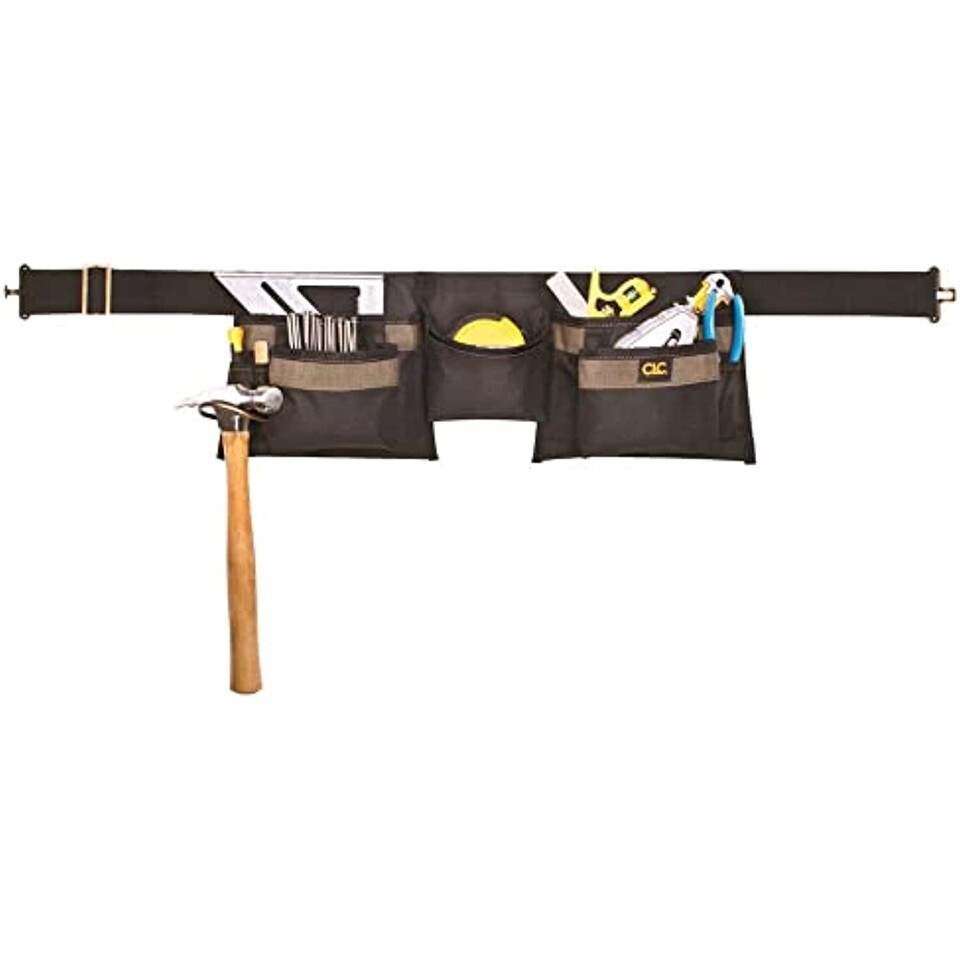 This contractor-grade work apron has a 2 In. inches wide web belt with an interlocking buckle, and 5 main pockets with 3 smaller pockets and sleeves, includes a hammer loop.