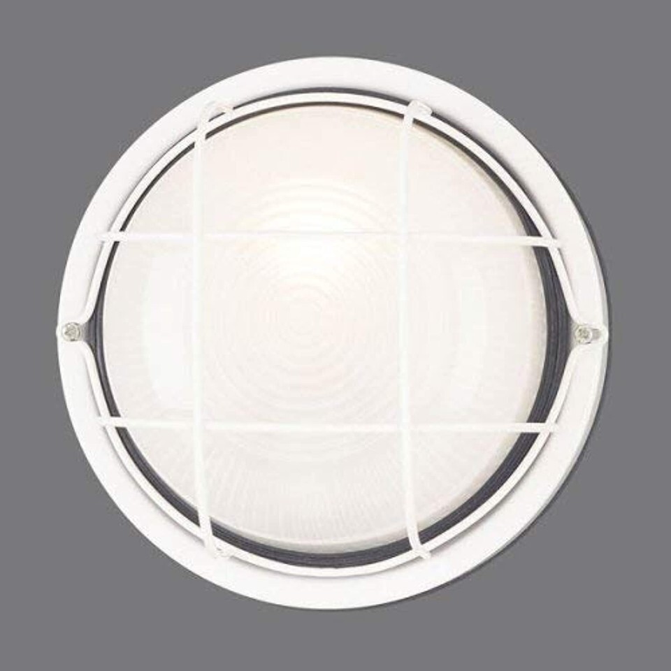 Providing accent lighting in a versatile design, this Westinghouse One-Light Exterior Wall Fixture adds a contemporary touch to your exterior environment. Made of steel for rugged strength, this fixture with white finish offers a basic style that matches most architecture. The round white glass lens, protected under a thin cage, ensures generous light coverage. Install this fixture to your front or back entryway or by your garage door. You can also use it to create an accent for your porch, deck, patio, balcony, or side entrance. Wherever you mount it, you will enjoy the fixture's bright light and contemporary look. This round fixture is 8 Inch in diameter and extends 4 Inch from the wall. It uses one medium-base light bulb, 60-watt maximum (not included). This Westinghouse lantern is Underwriters Laboratories listed for safety. It is backed by a five-year warranty against defects in materials and workmanship.