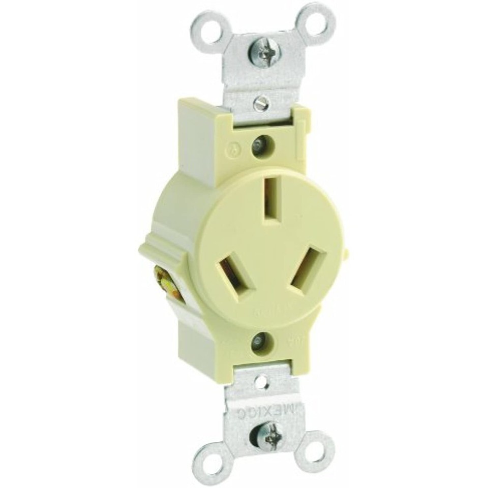 Product Description 20 Amp single outlet. Features commercial Specification Grade. Ideal for use in hotels, schools, hospitals, and commercial office buildings. Non-grounding, 3-pole, 3 wire, side wired. Nema (National Electrical Manufacturer's Association) 10-20R. 20 amp/125 Volt/250 Volt. Ul (underwriter's laboratories) listed. From the Manufacturer Leviton's line of Heavy-Duty Specification Grade receptacles are designed and manufactured to withstand the most demanding environments. Available in a wide variety of configurations, including isolated ground, tamper-resistant, etc., these Commercial Grade devices are the electrical contractor's choice for use in hotels, schools, hospitals and commercial office buildings. 20 Amp, 125/250 Volt, Narrow Body Single Receptacle, Straight Blade, Commercial Grade, Non-Grounding, Ivory.