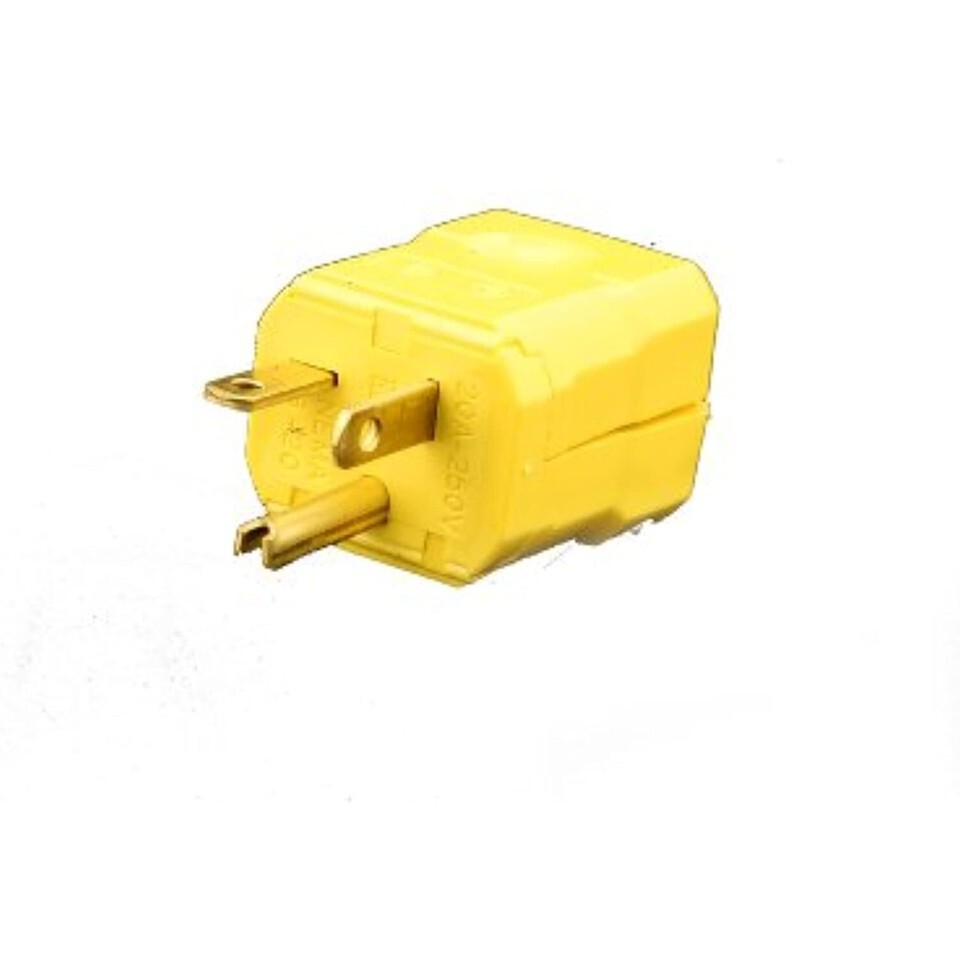 Product Description Commercial specification grade. Python grounding plug with 1-piece hinge construction for quick assembly. Triple-drive screws; straight blade, Phillips, and Robertson head. Clear thermoplastic back terminal cover, high impact-resistant nylon housing resists abuse. Curved and crimp-lock terminal clamps allow electrical connection without cutting wire strands. Wide cord clamp range (0.250 In. to 0.650In.) with removable inserts (18-3SVT to 10-3ST). Durable front module lock withstands punishment. Yellow. UL (Underwriter's Laboratories) listed. From the Manufacturer When it comes to the demanding nature of today's commercial and industrial electrical environments, ruggedness and ease of installation are the features you look for first in any line of plugs and connectors. Leviton's Python straight-blade plugs and connectors hold up..under the most exacting requirements..the toughest conditions..the roughest handling. Python's exceptional design features meet your needs for a quick, easy-to-wire plug and connector system..a must in today's faced-paced world where lost minutes on a job can translate into lost profits. 20 Amp, 250 Volt, Industrial Grade, Plug, Straight Blade, Grounding, Python, Yellow.