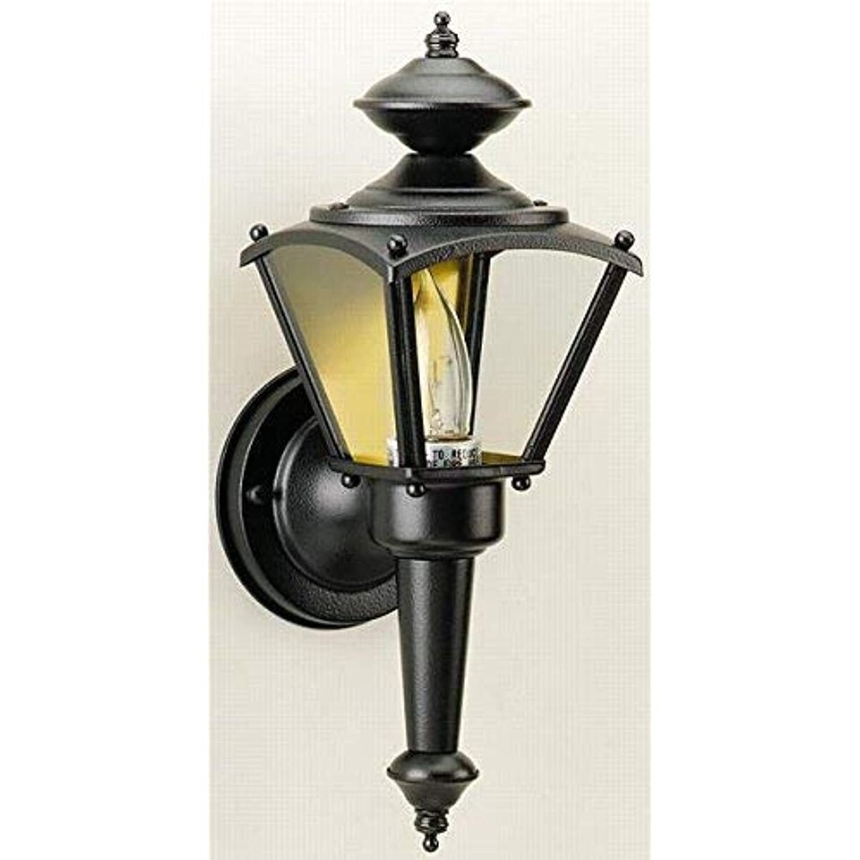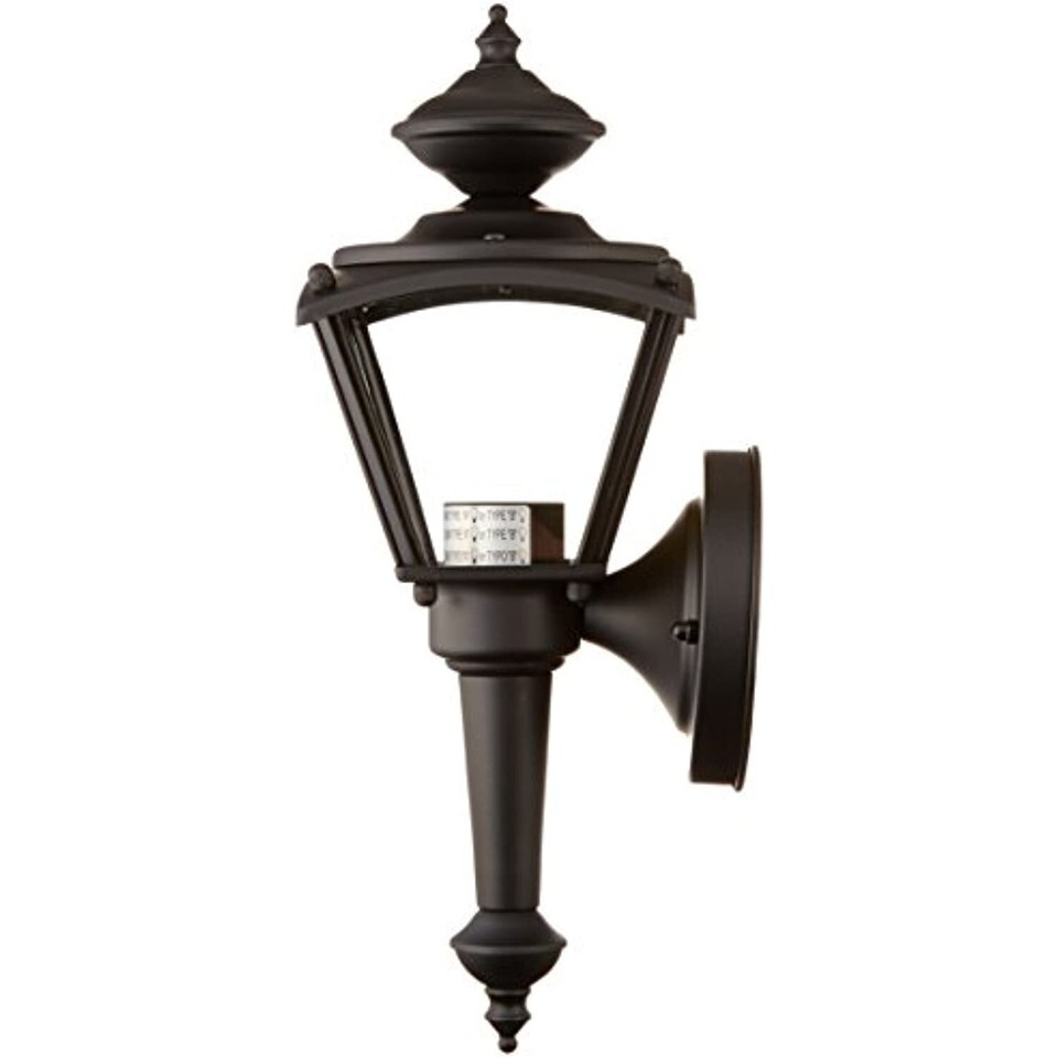 Product Description Westinghouse Lighting 6698300 One-Light Exterior Wall Lantern, Matte Black Finish on Steel with Clear Glass Panels From the Manufacturer Boost your home's curb appeal with bright, welcoming light. This Westinghouse Lighting One-Light Exterior Wall Lantern features durable steel construction and a matte black finish that mimics the look of classic wrought iron. The clear glass panels, round back plate, bulbous finial, and tail with matching pendant add to the traditional look. This lantern is ideal for lighting entryways, porches, and garages, and it mounts securely to any exterior wall. The lantern is 13-1/2 by 4-3/4-Inch (H by W) and extends 5-3/4-Inch from the wall. It is 8-Inch high from the center of the outlet box, and its round back plate is 4-1/2-Inch in diameter. The fixture uses one medium-base clear A19 light bulb, 100-watt maximum, or one torpedo light bulb, 60-watt maximum (not included). This Westinghouse Lighting exterior light fixture is Underwriters Laboratories listed for safety. It is covered by a five-year manufacturer's warranty against defects in materials and workmanship. What's in the Box- One-light exterior wall lantern.